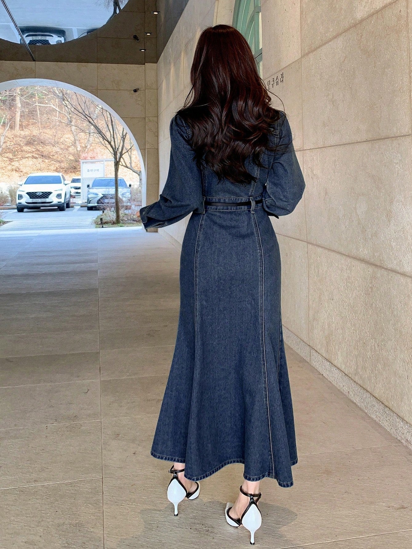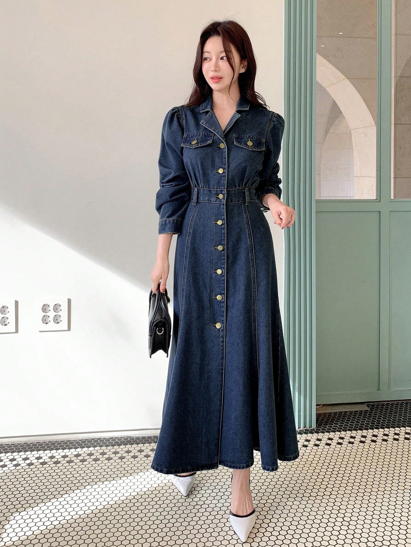 DAZY Women's Solid Color Denim Dress, Simple & Fashionable, Suitable For Summer
