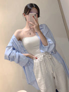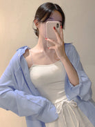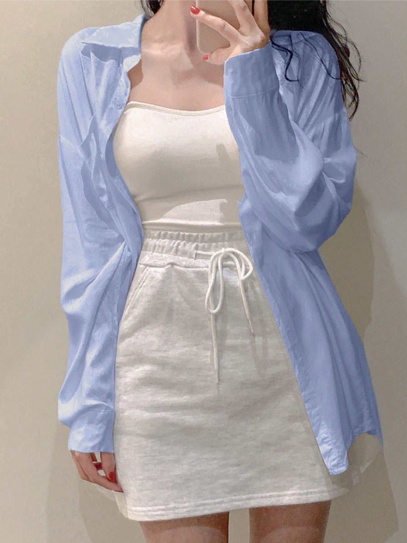 DAZY Women's Solid Color Front Button Long Sleeve Elegant Collared Shirt