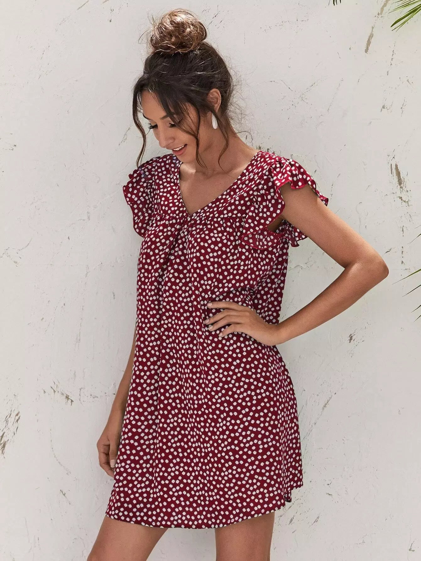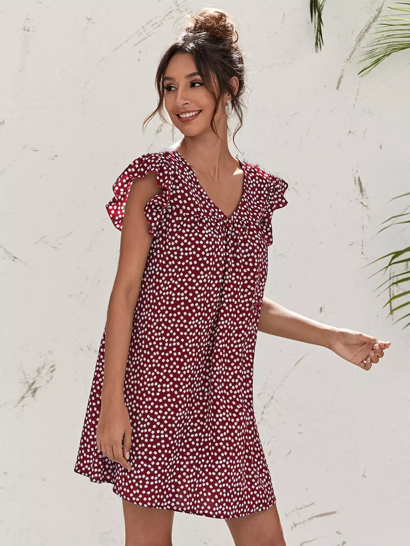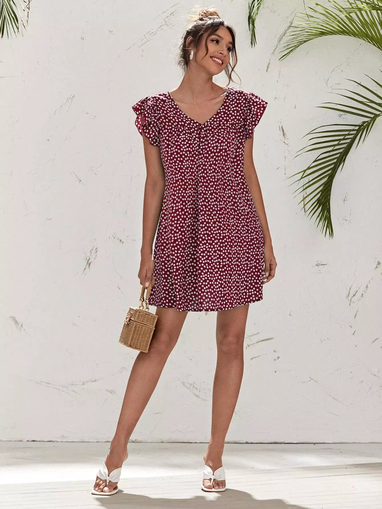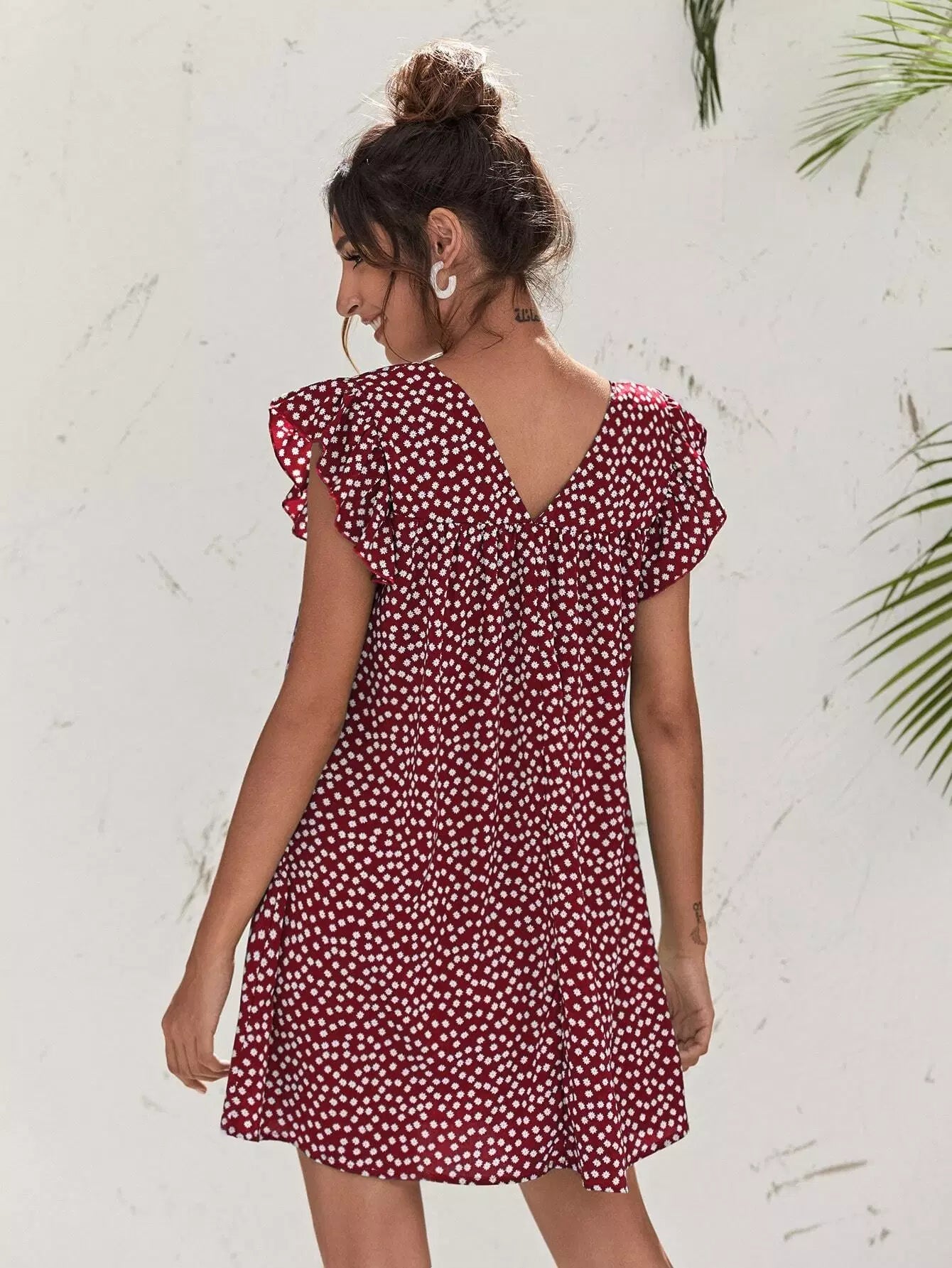 Ditsy Floral Butterfly Sleeve Babydoll Dress