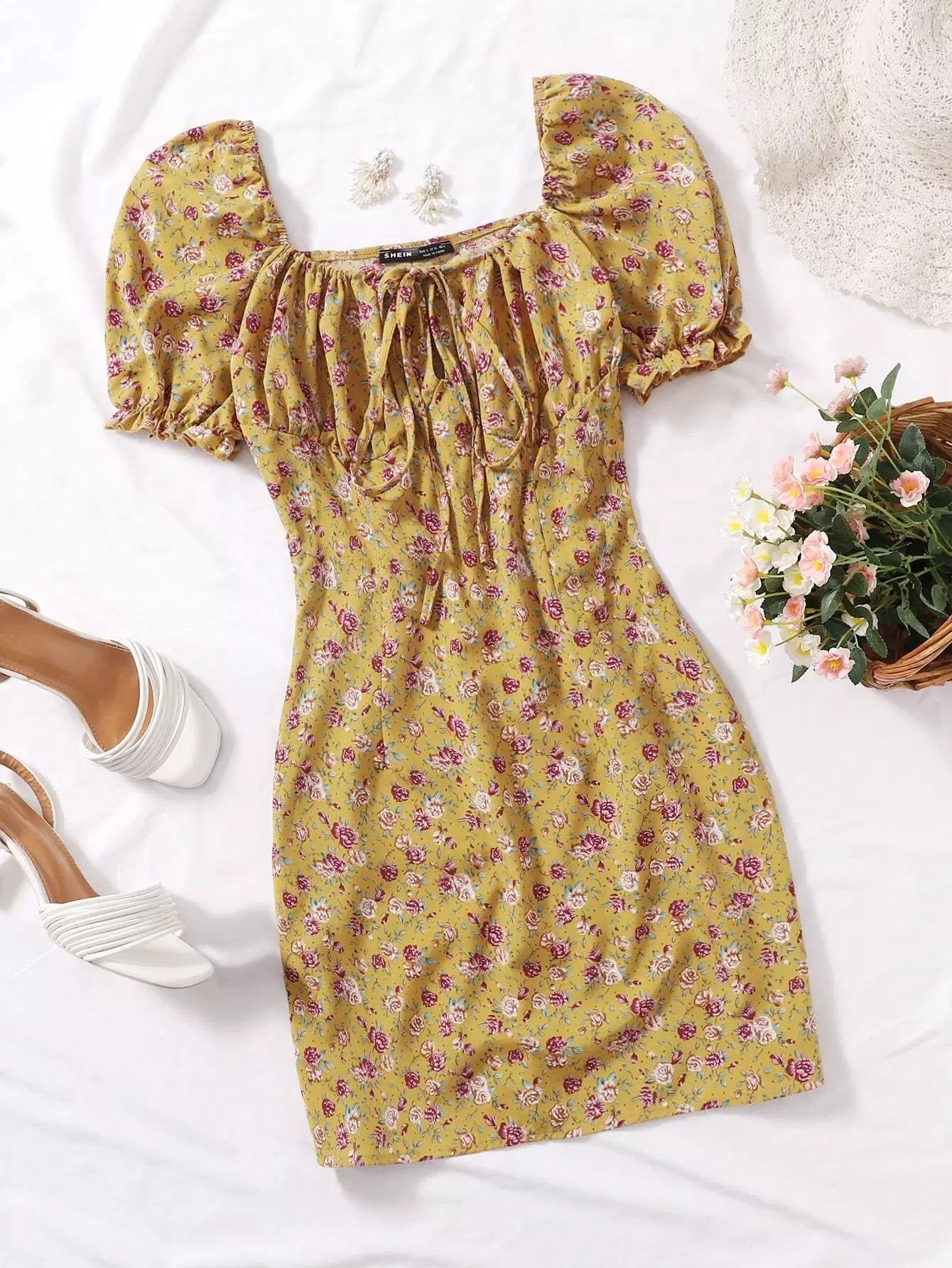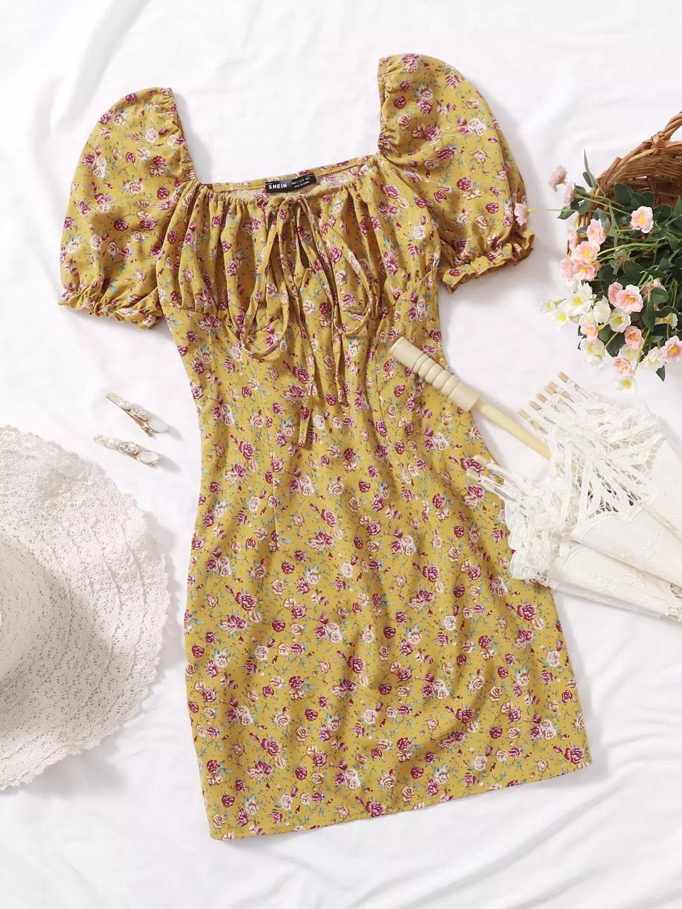 Ditsy Floral Ruched Bust Dress