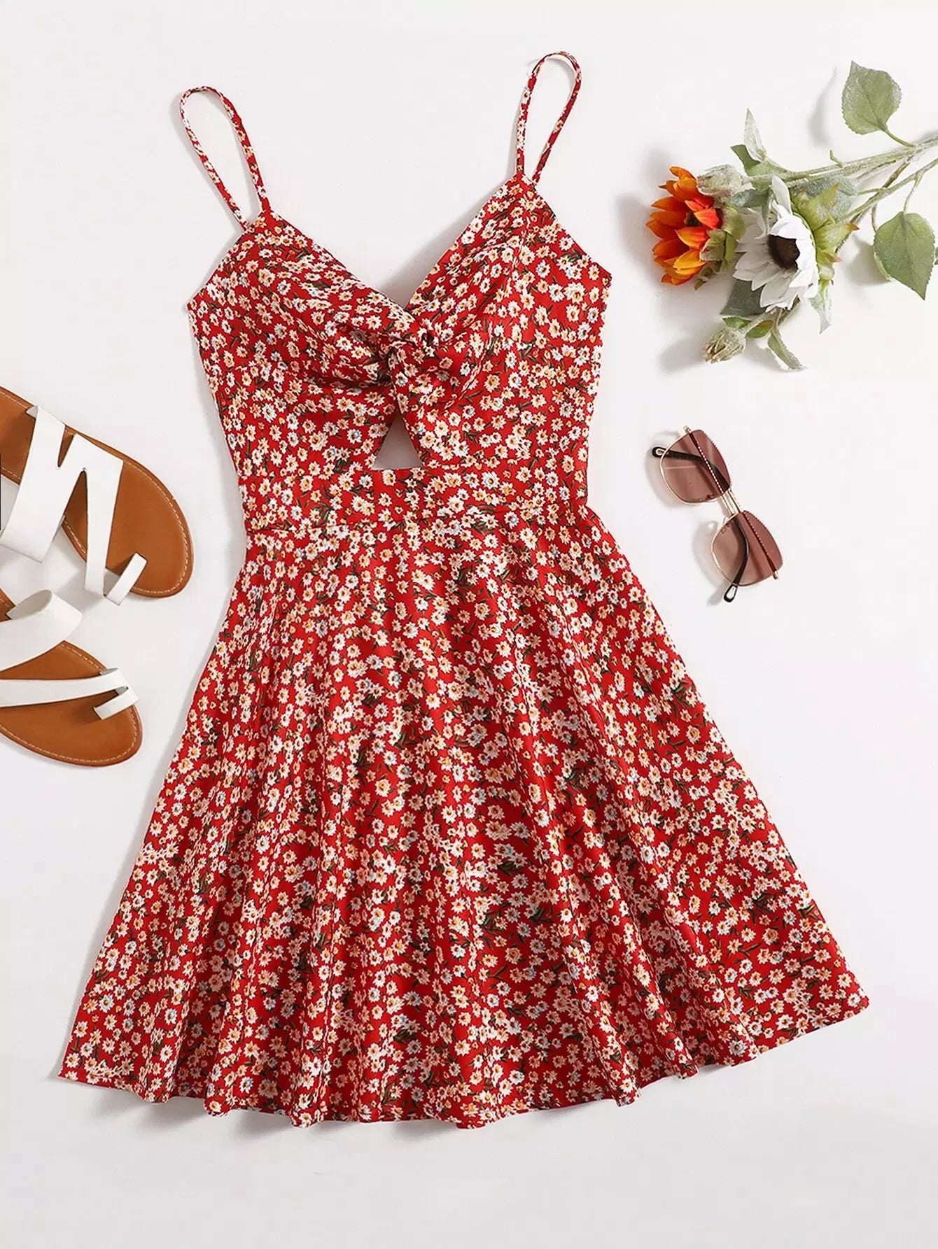 Ditsy Floral Twist Cut Out Cami Dress