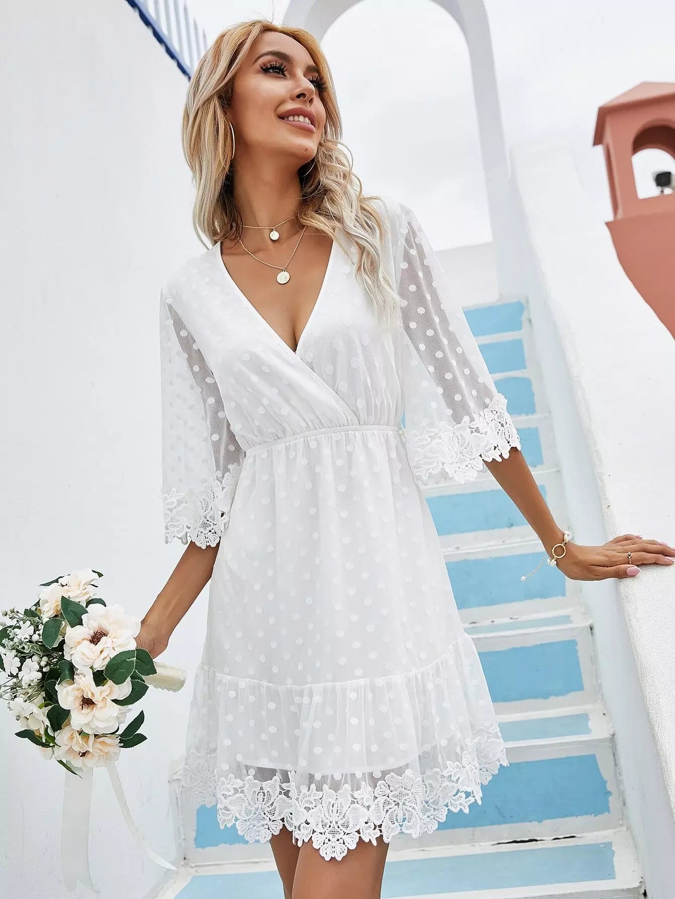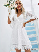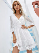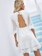 Dobby Mesh Overlay Backless Ruffle Hem A-line Dress