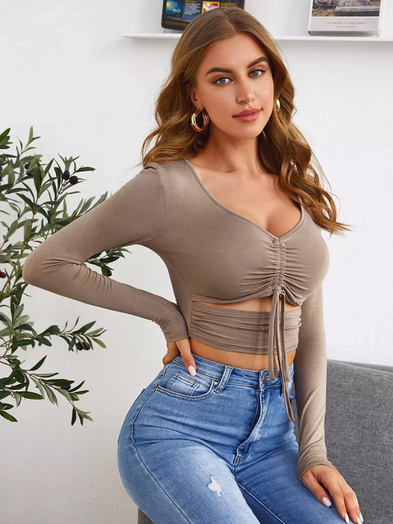 Drawstring Ruched Cutout Crop Top