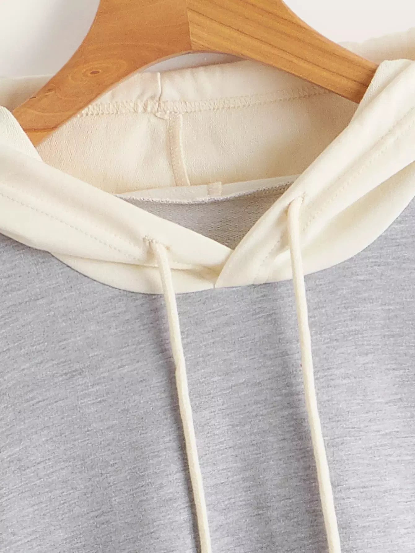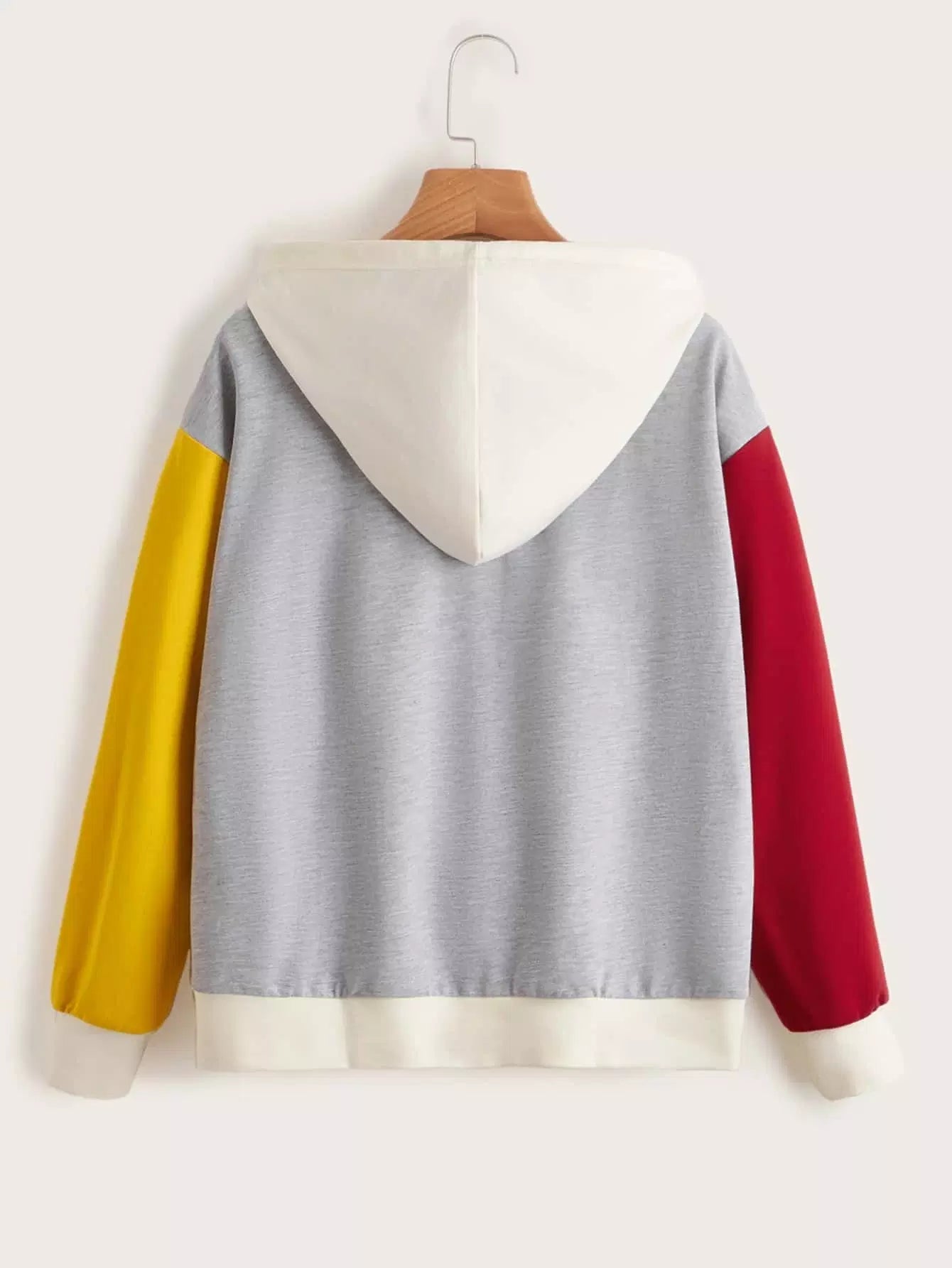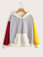 Women - Drop Shoulder Color Block Drawstring Hoodie