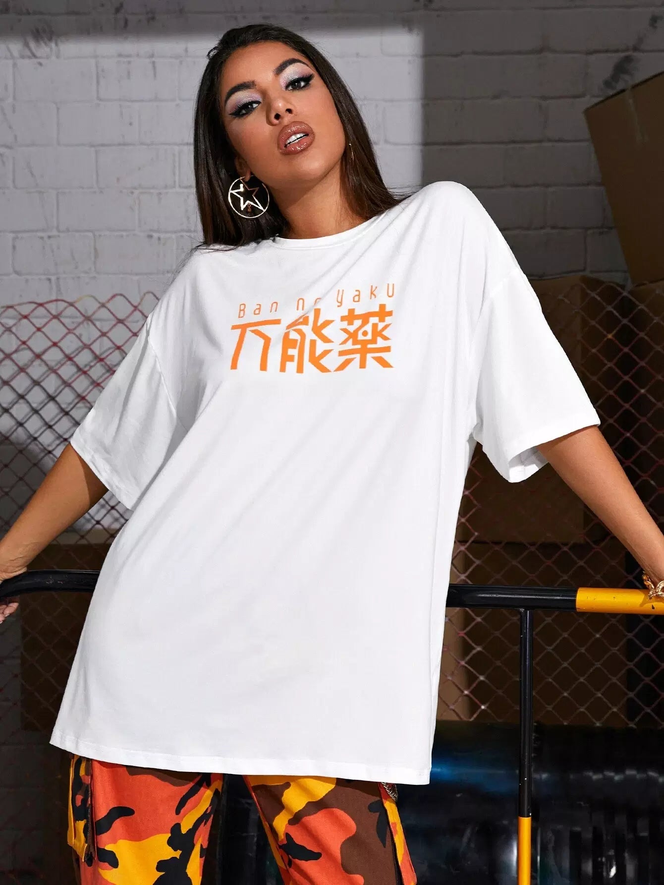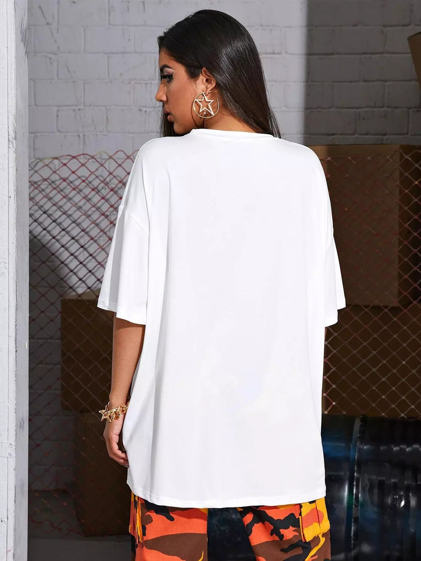 Women - Drop Shoulder Letter Graphic Longline Tee