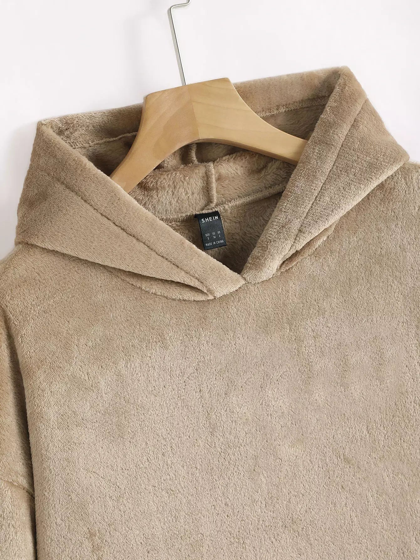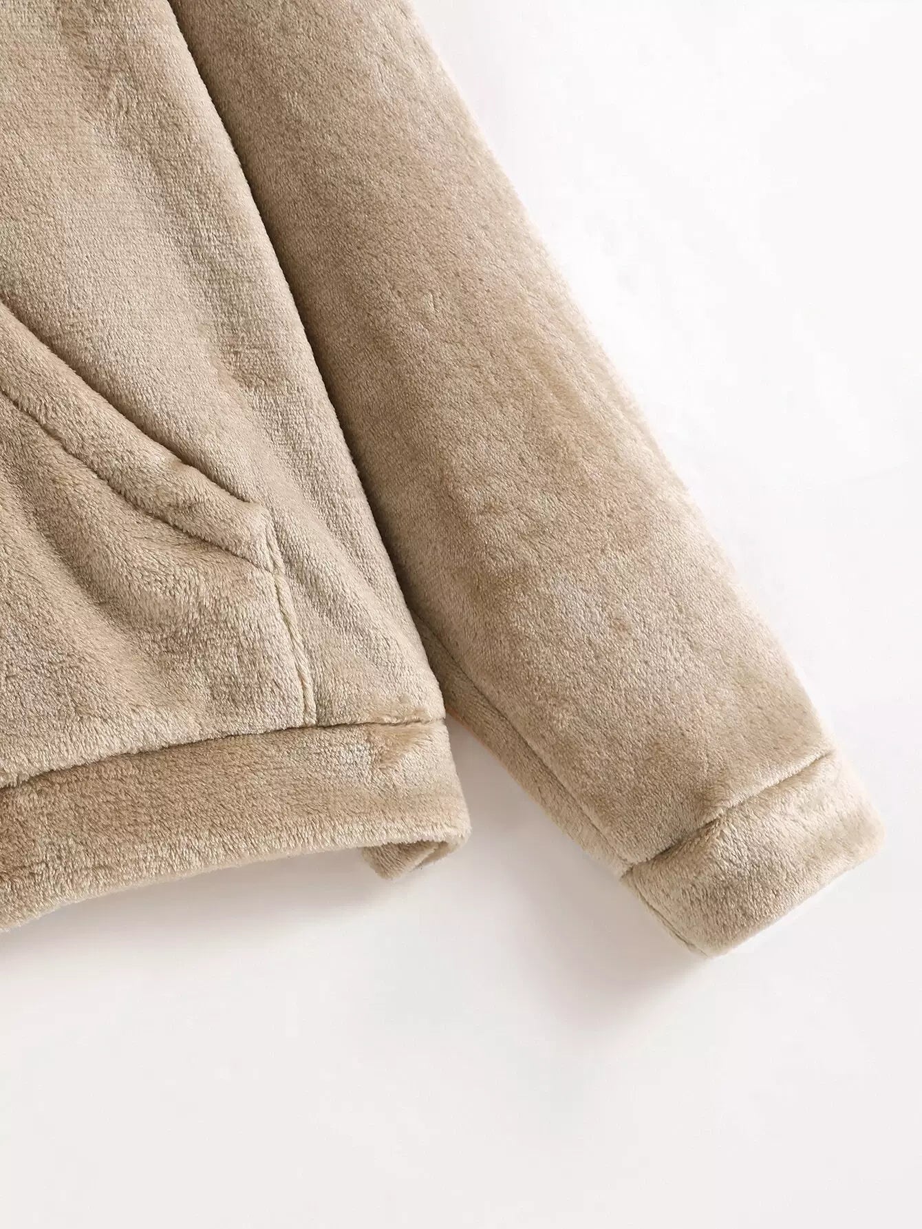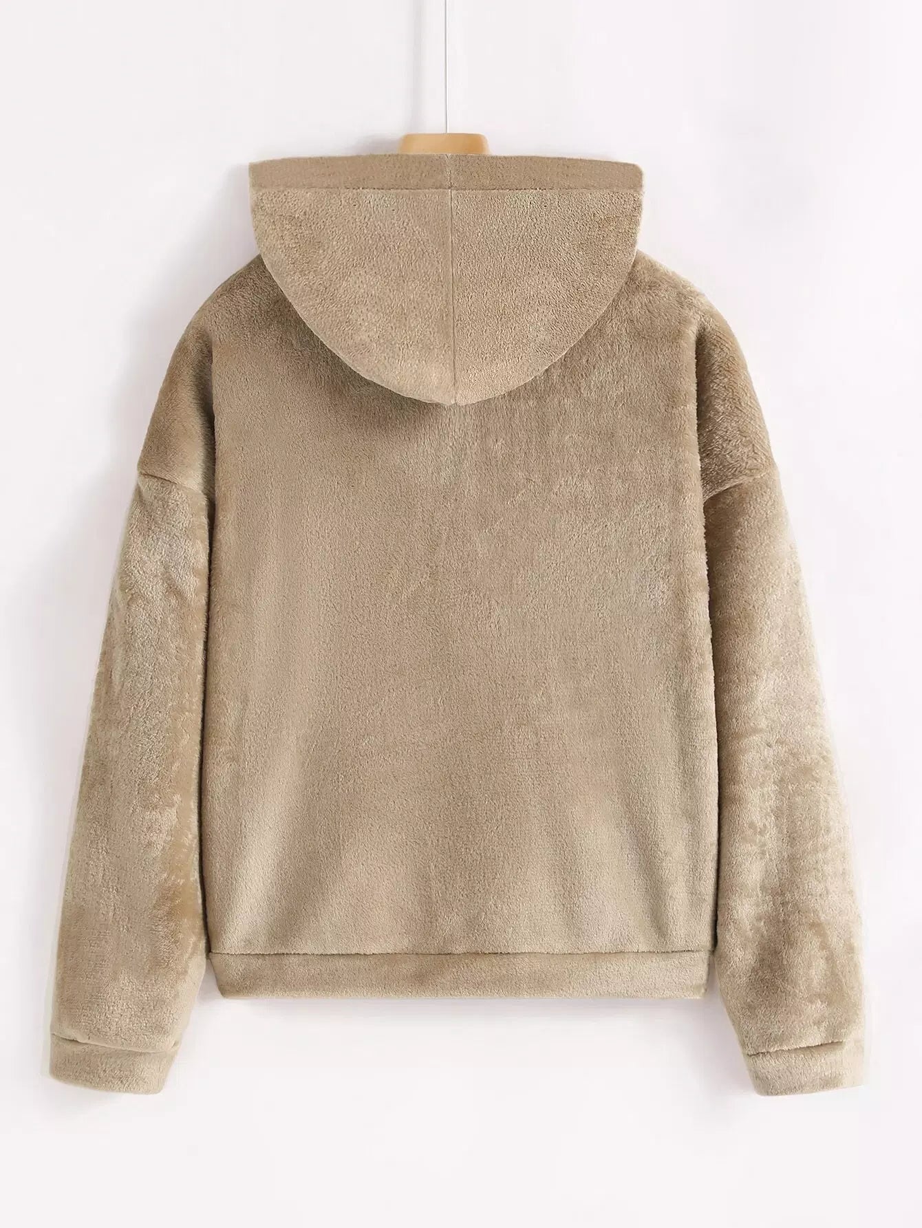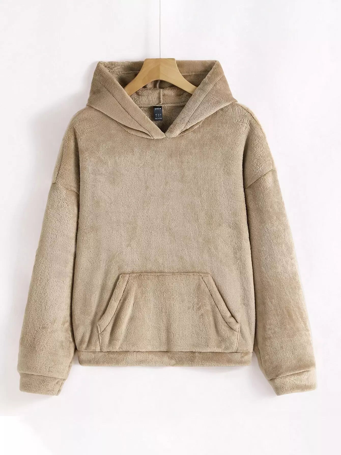 Drop Shoulder Pouch Pocket Teddy Hoodie