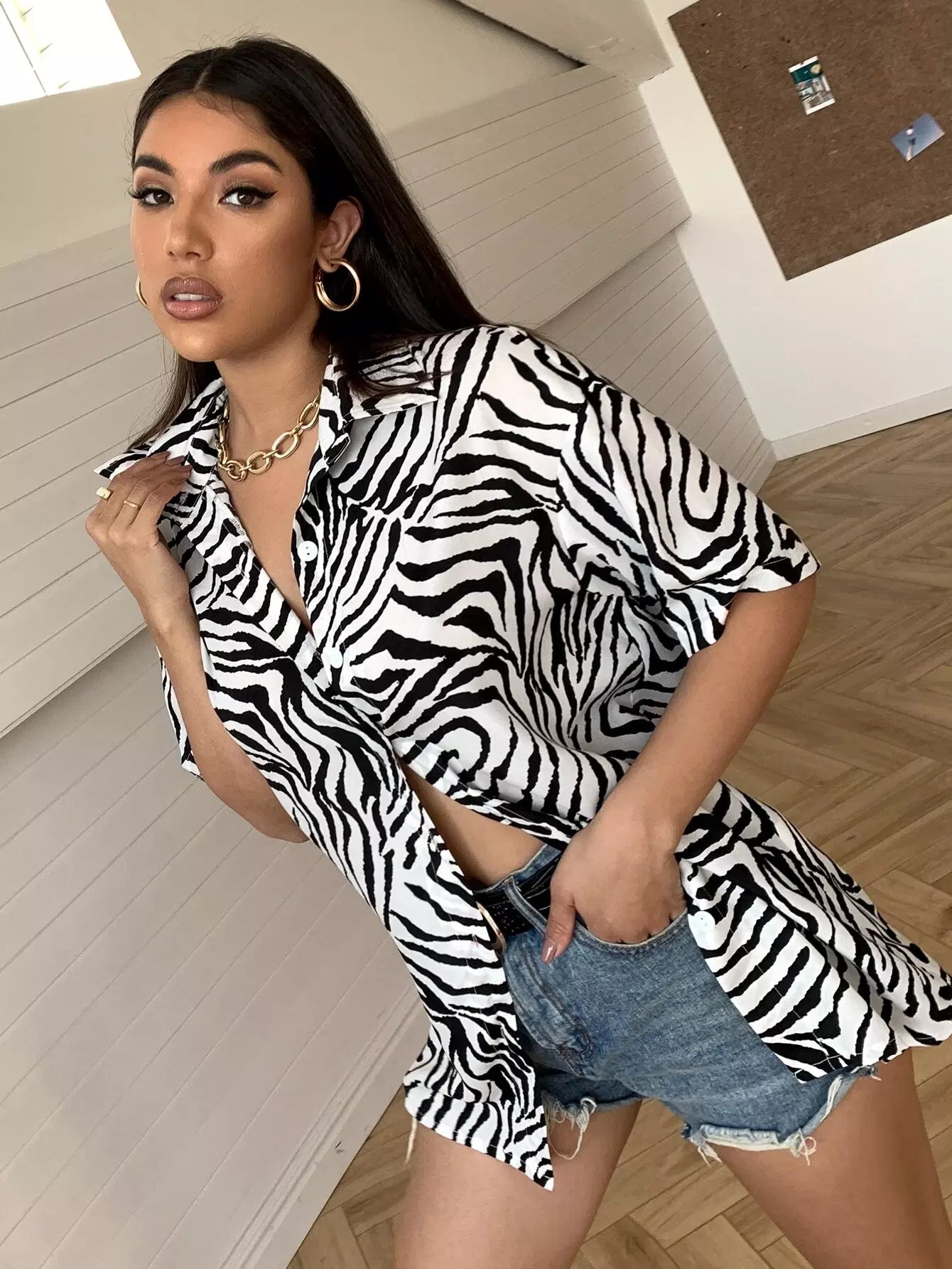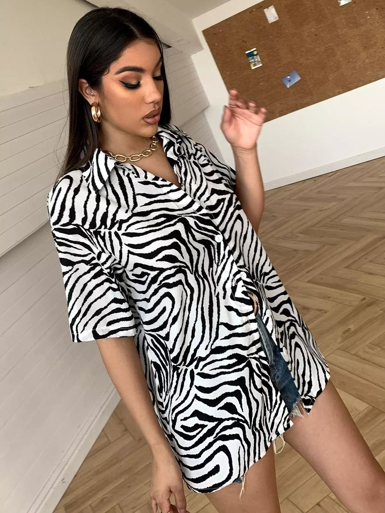 Women - Drop Shoulder Zebra Stripe Longline Blouse