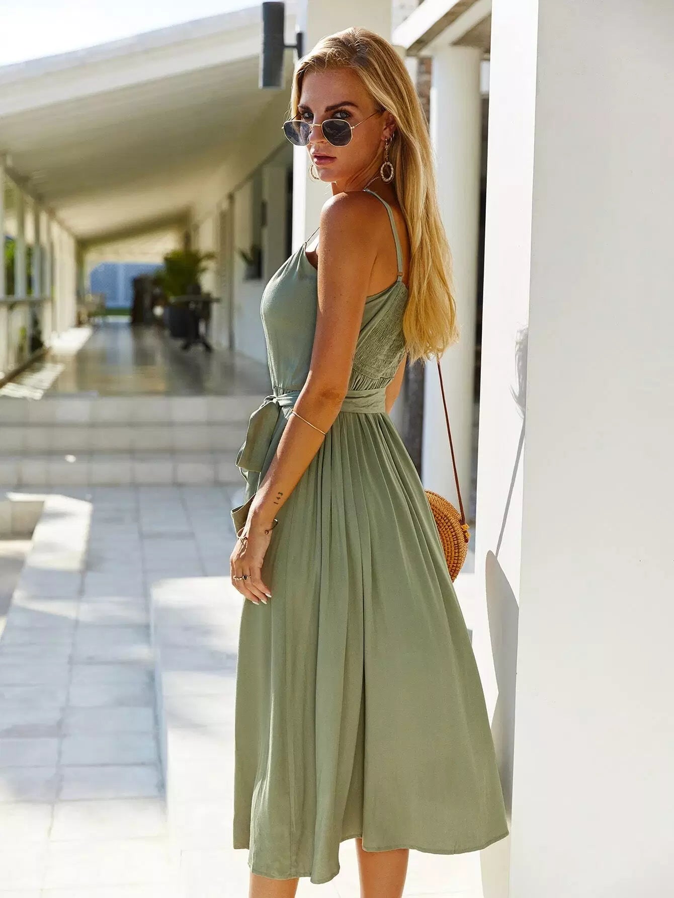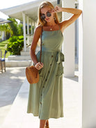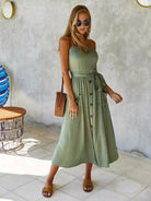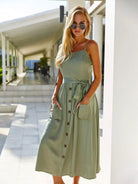 Dual Pockets Shirred Back Cami Dress Without Belt