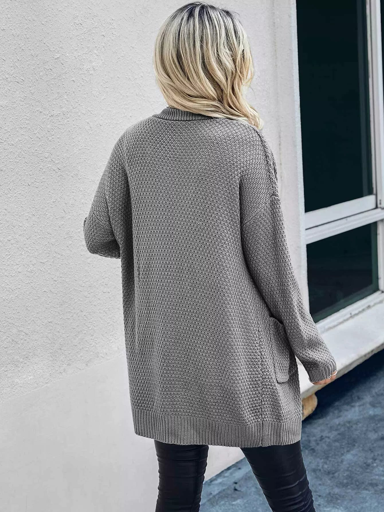 Dual Pockets Open Front Drop Shoulder Cardigan