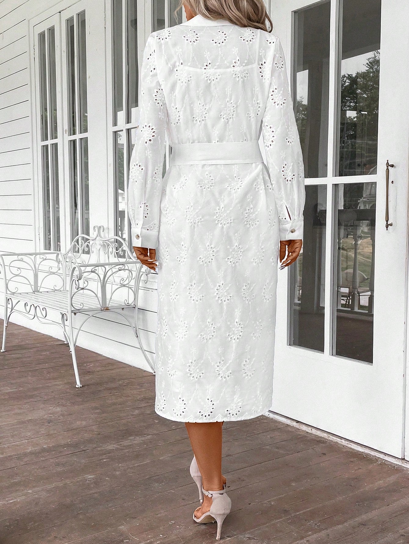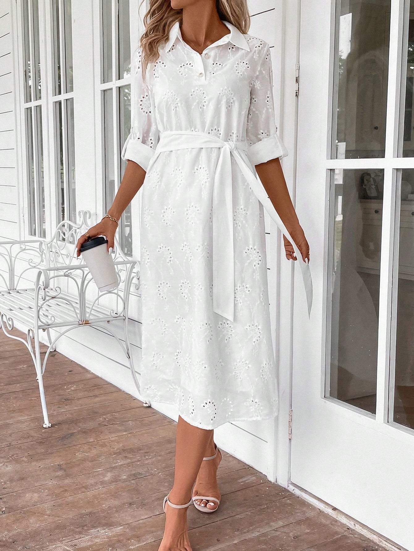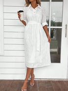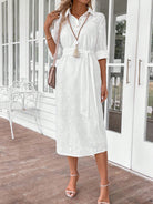 EMERY ROSE Women's Solid Color Roll Tab Sleeve Belted Chiffon Dress