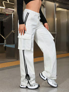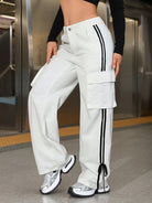 EZwear Casual Versatile Colorblock Striped Lace-Up Utility Denim Jeans