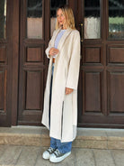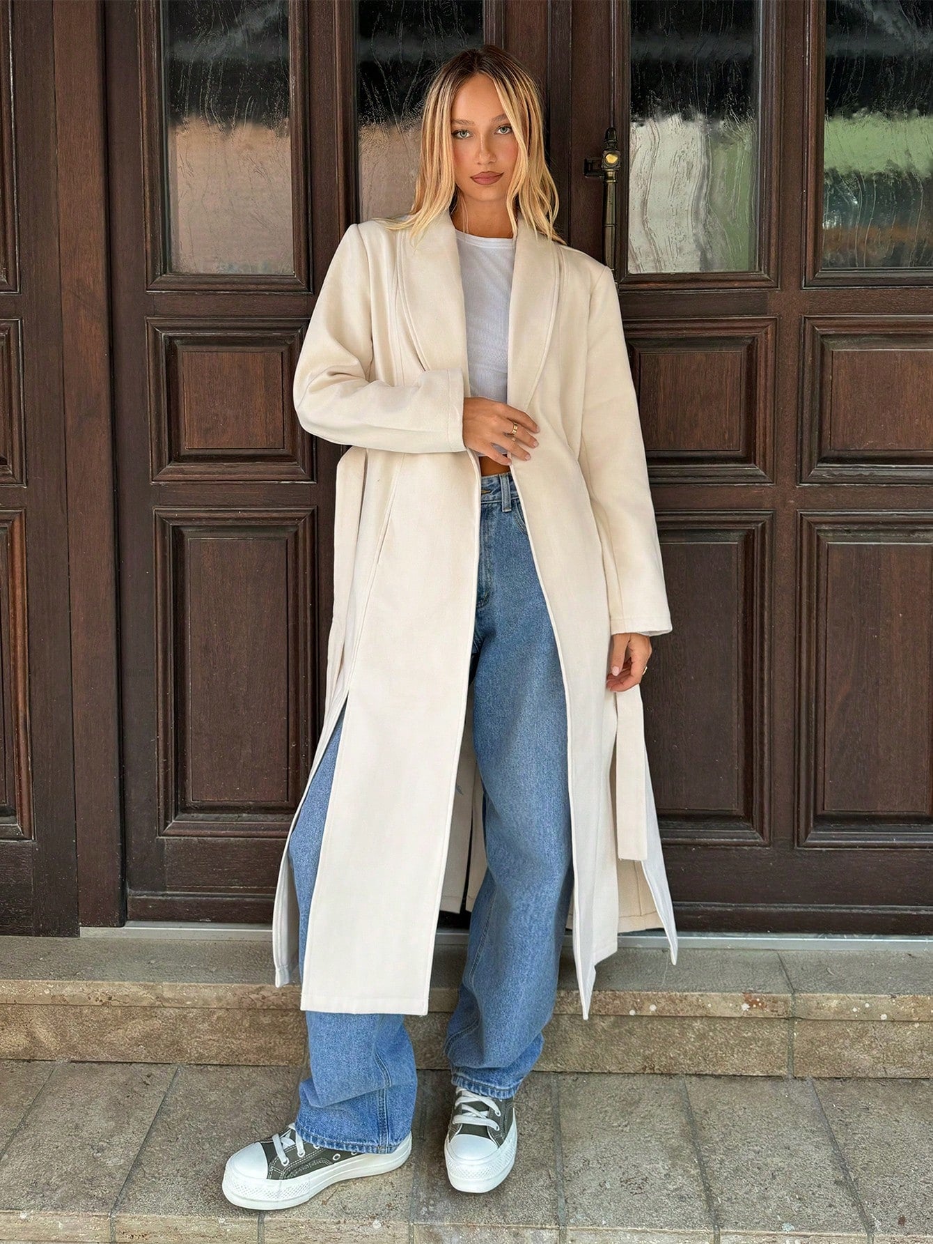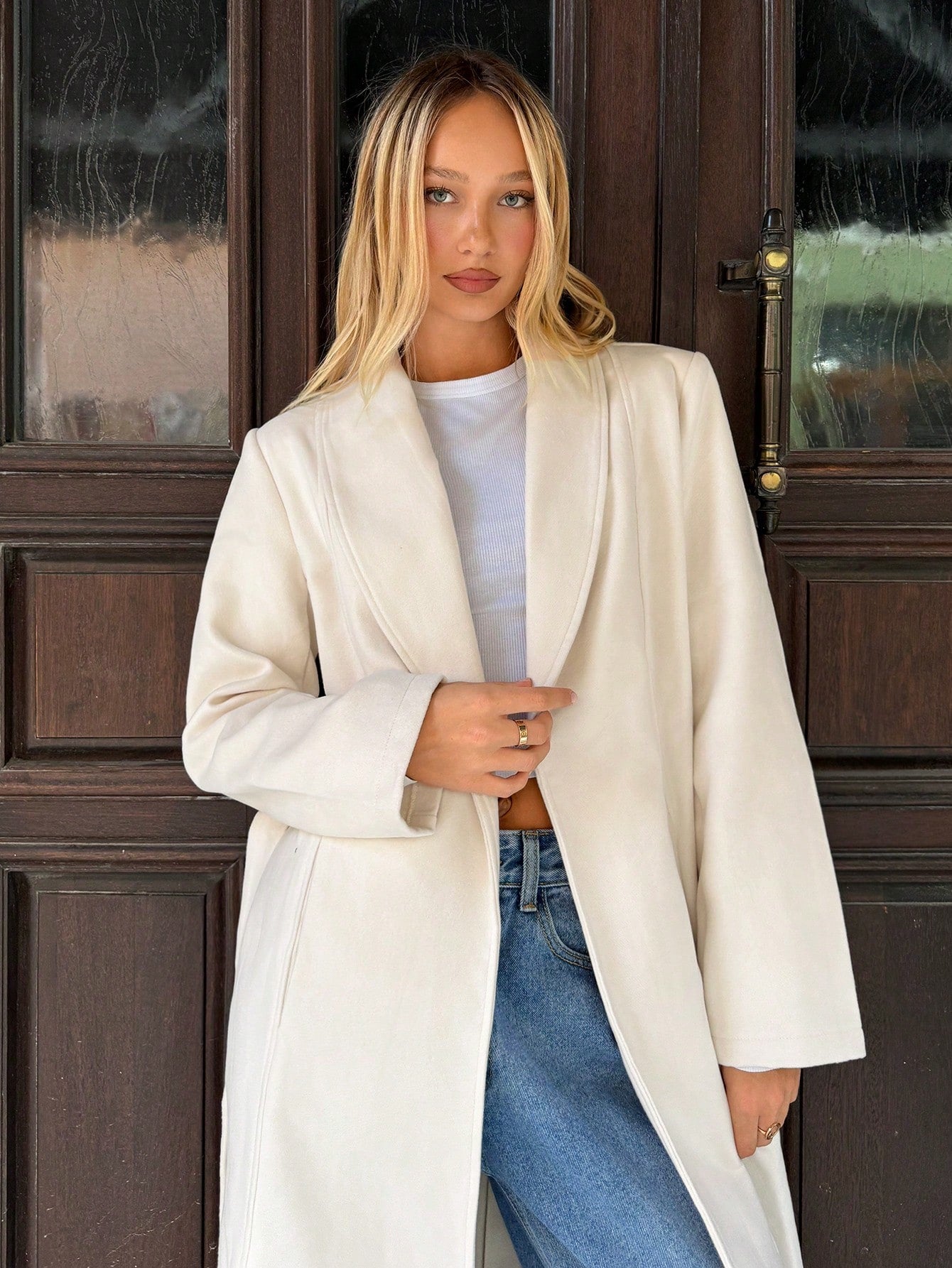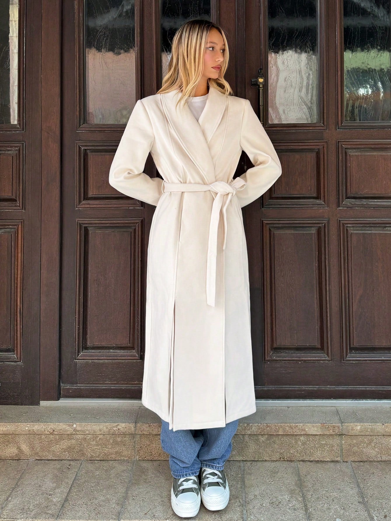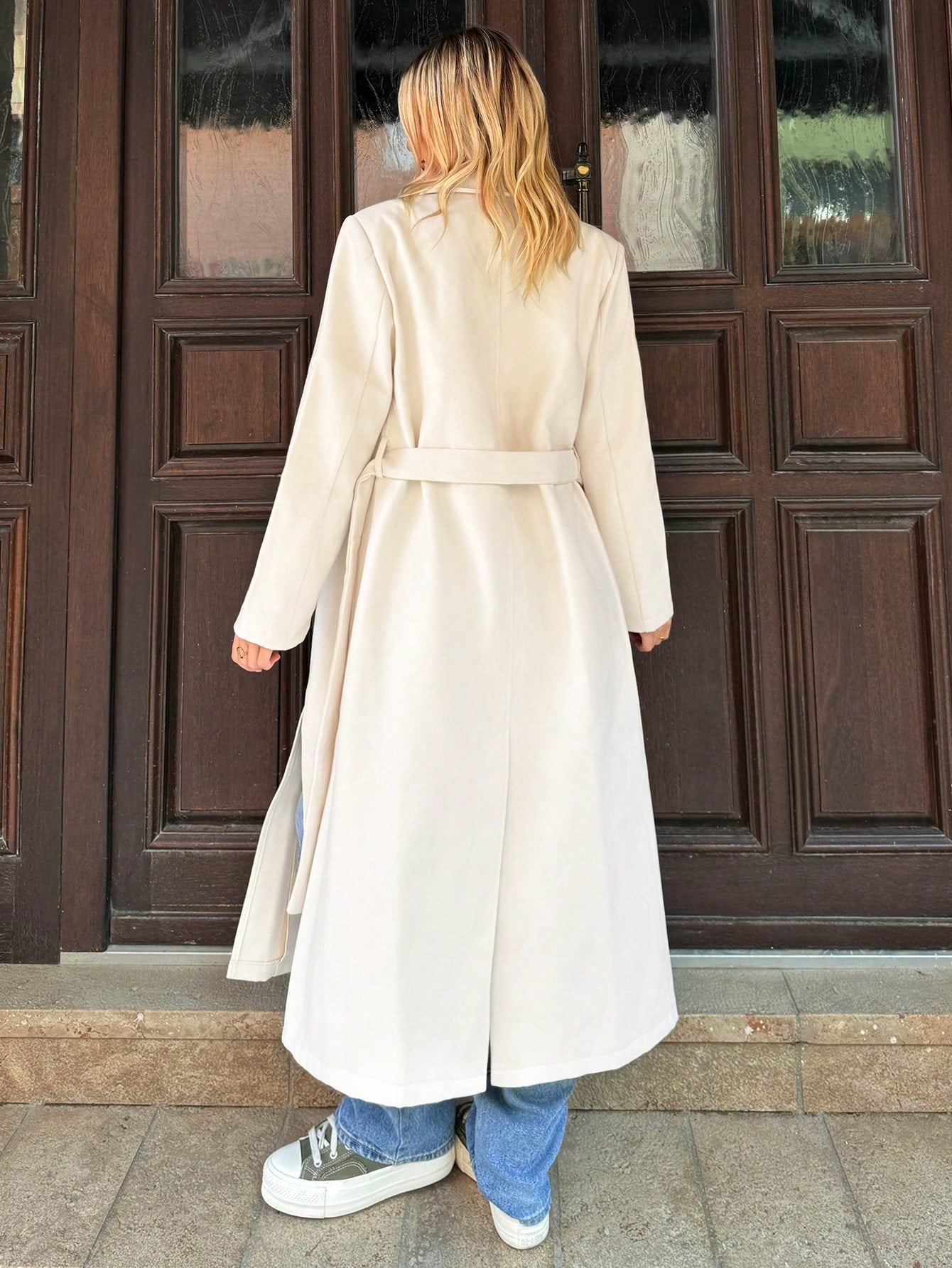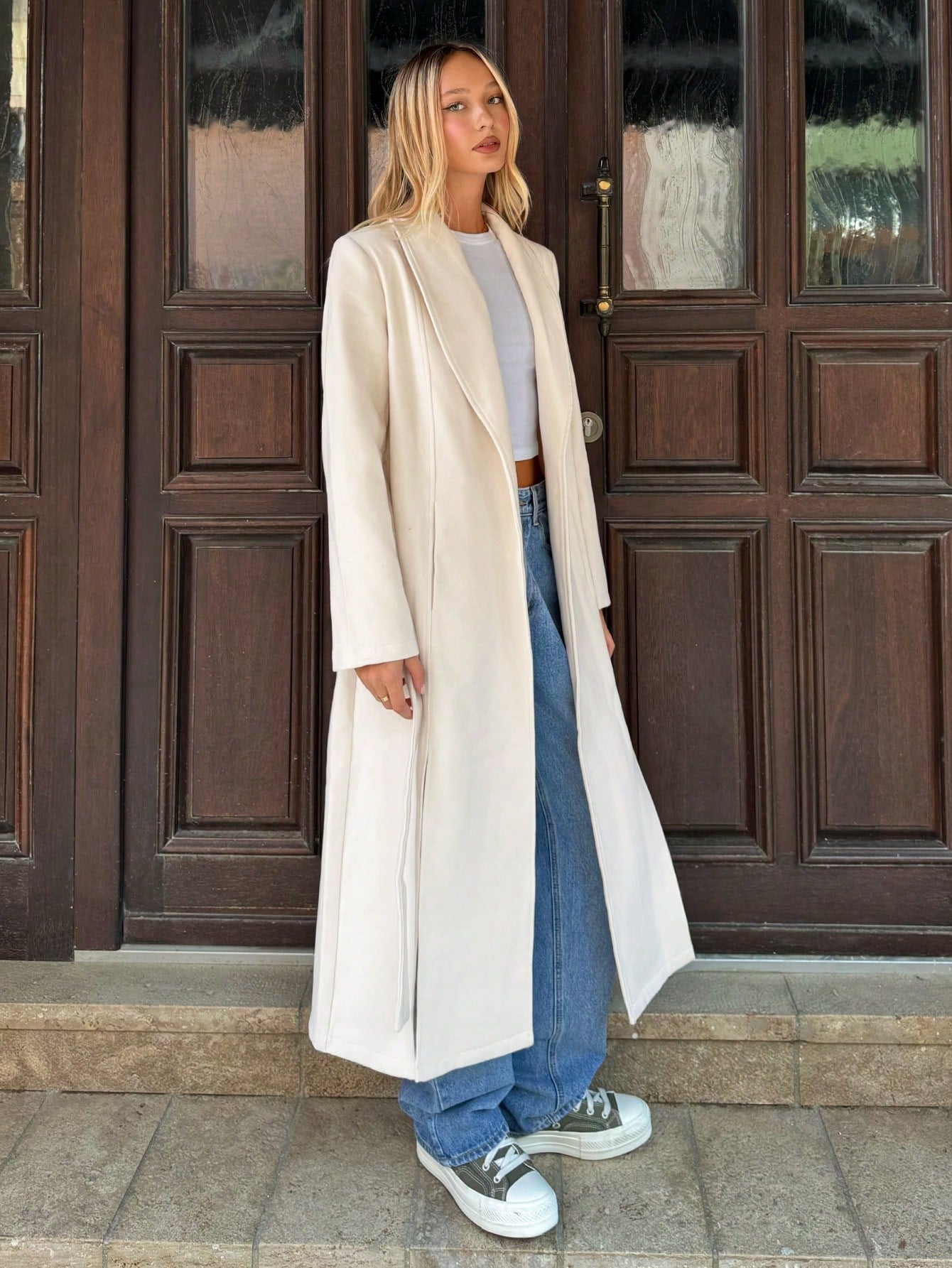 EZwear Women's Solid Color Long Sleeve Elegant Long Slit Epaulet Overcoat, Autumn/Winter