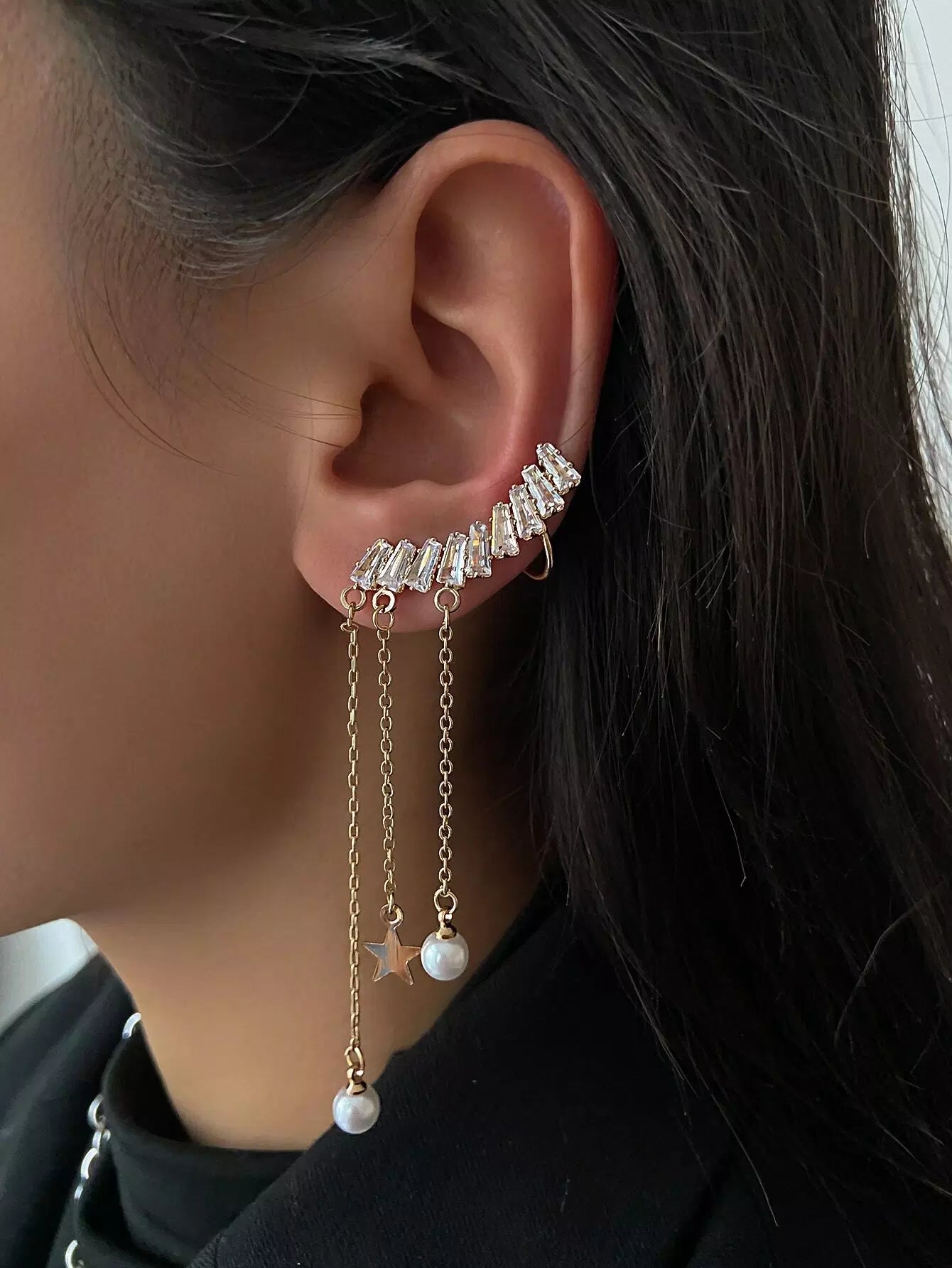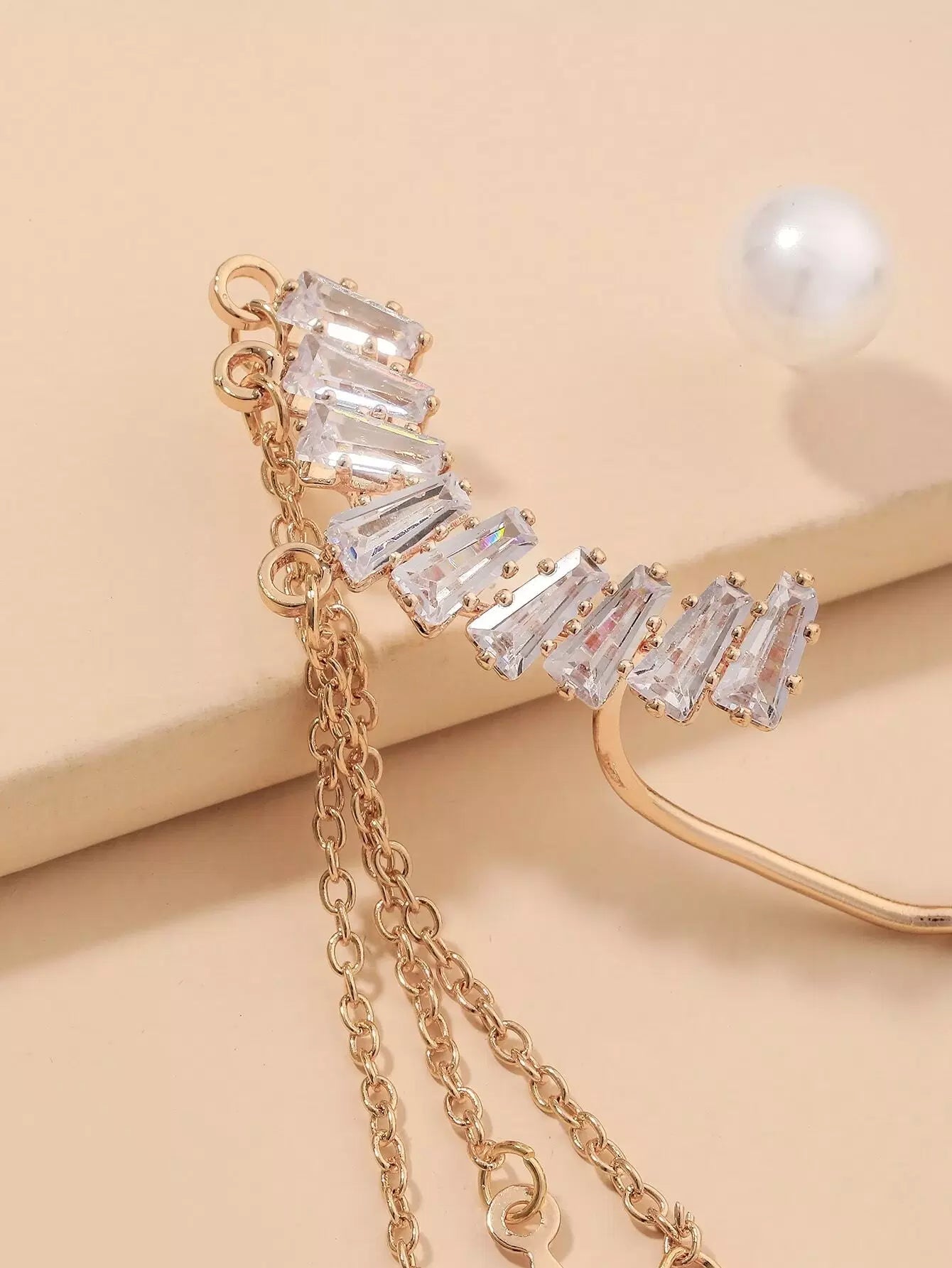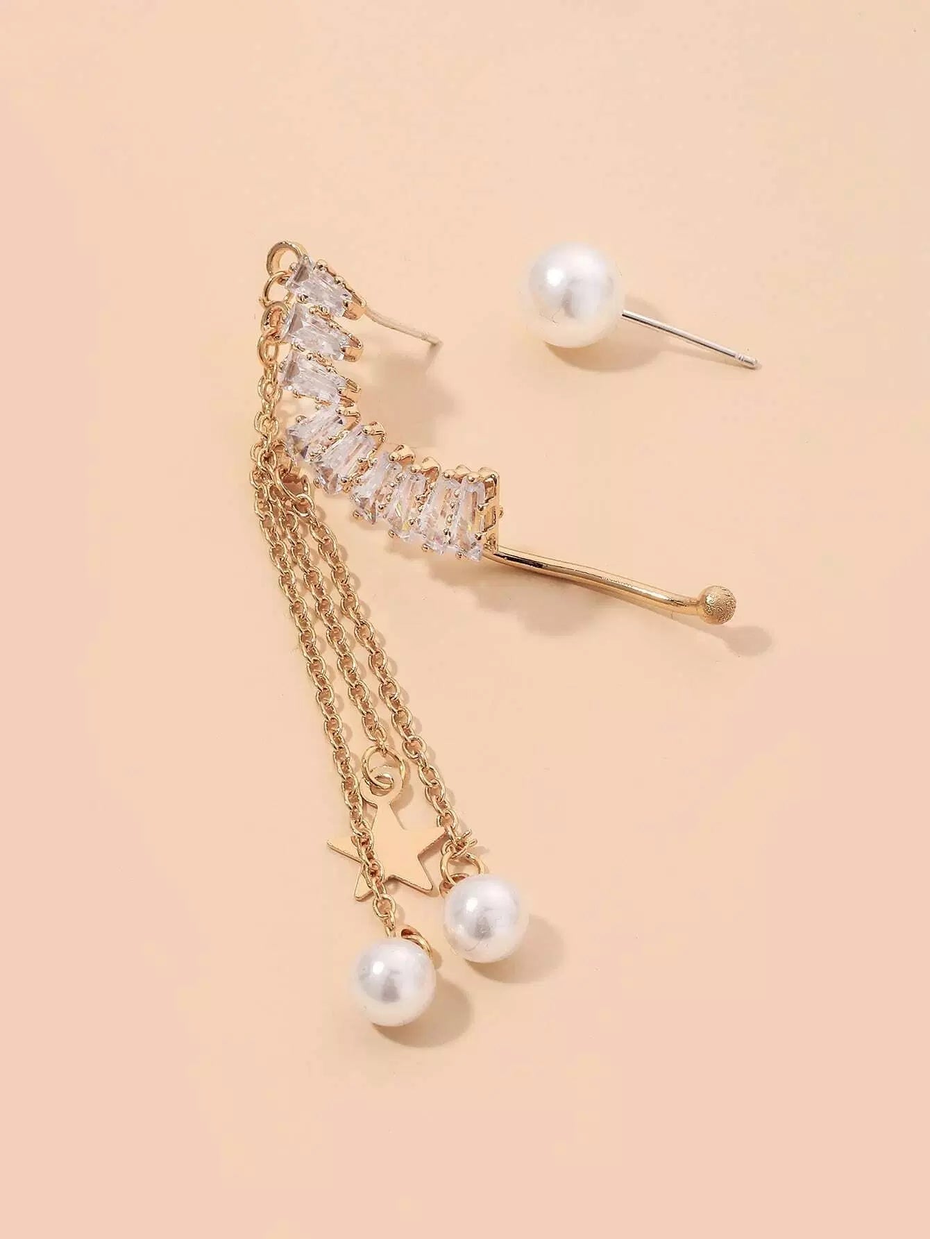 Faux Pearl Cubic Zirconia Decor Drop Earrings
