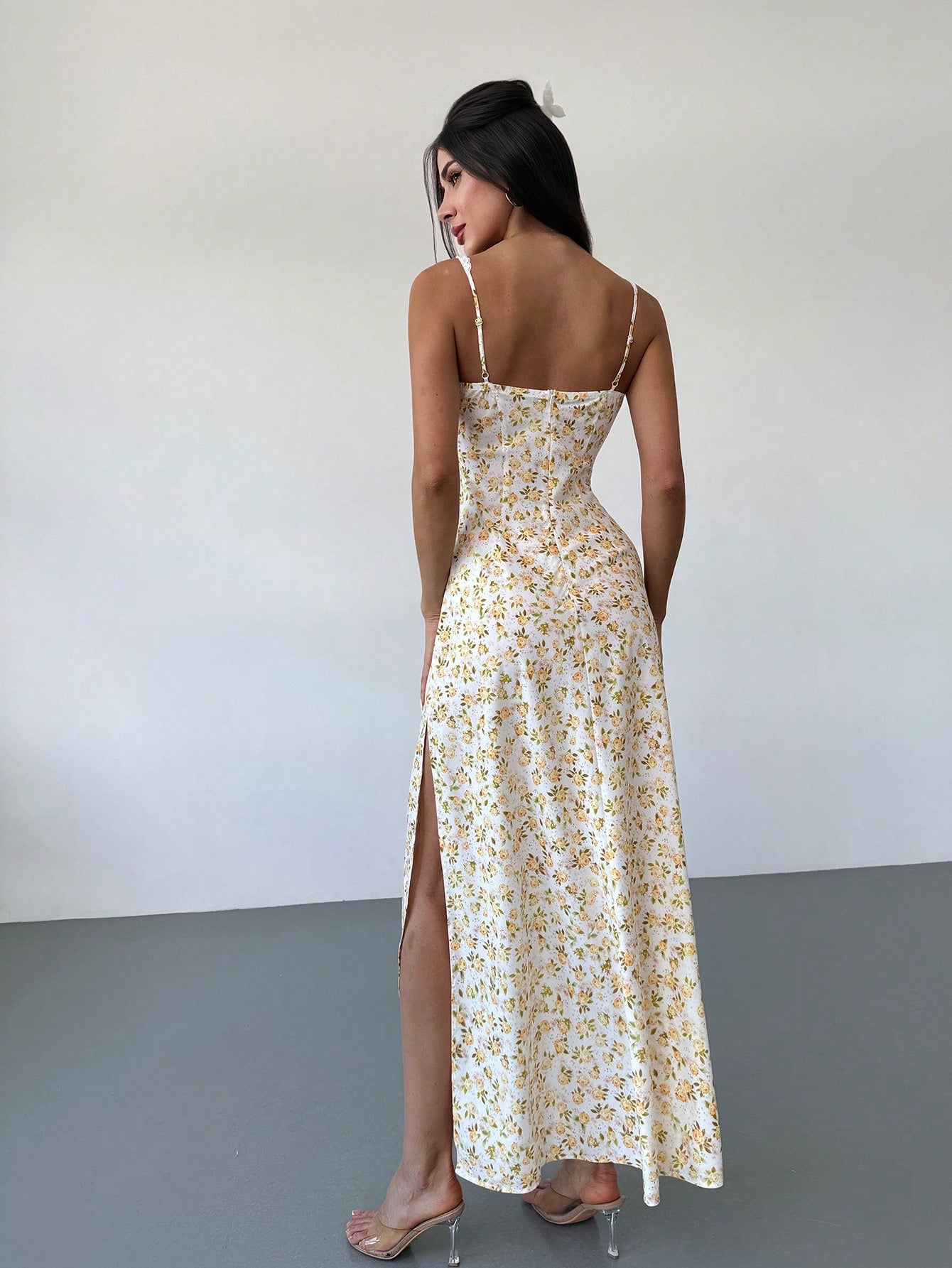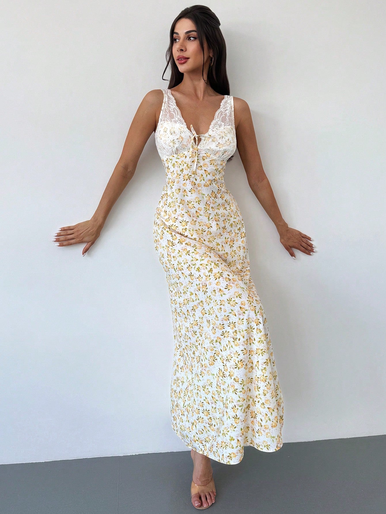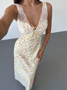 Firerie Ladies New Casual Elegant Floral Lace Patchwork Corset Dress Holiday Dress Suitable For Beach/Tea