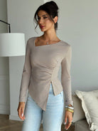 Firerie Solid Color Long Sleeve Bodycon Turtleneck Tops, Elegant & Casual For Daily Wear, Dating & Outing,