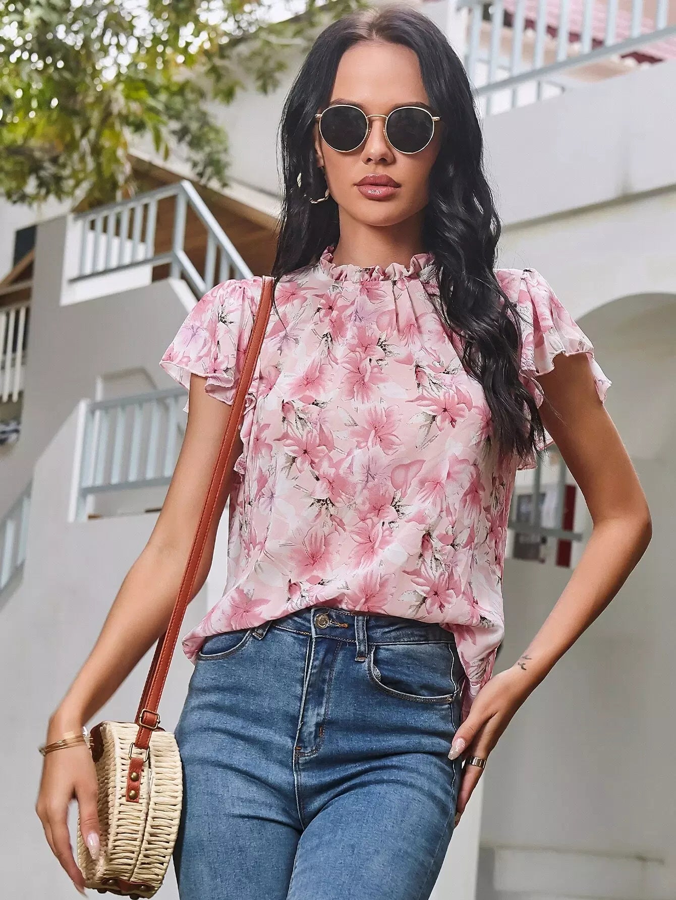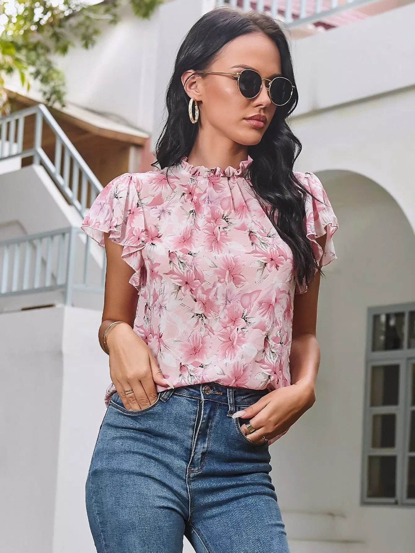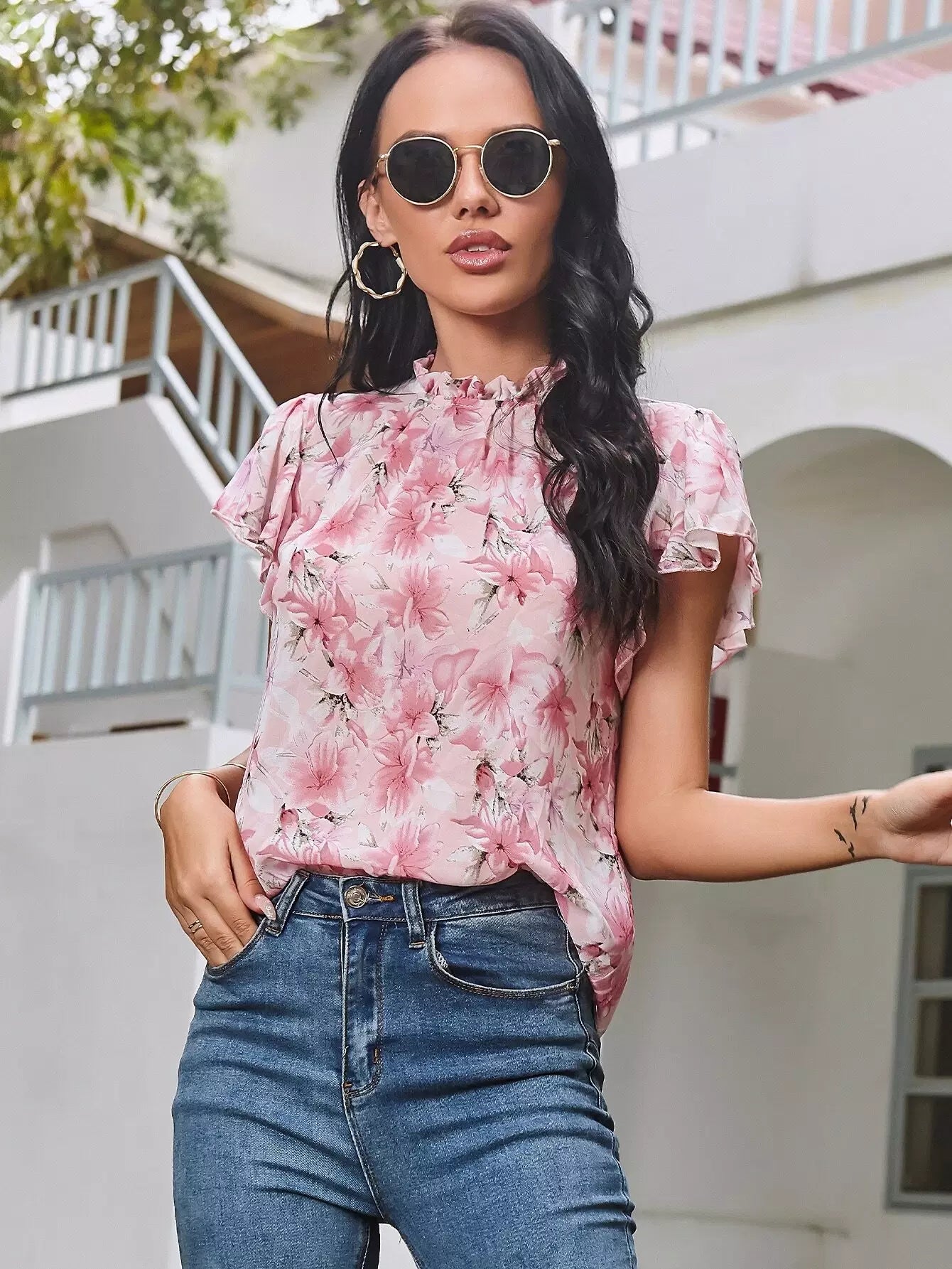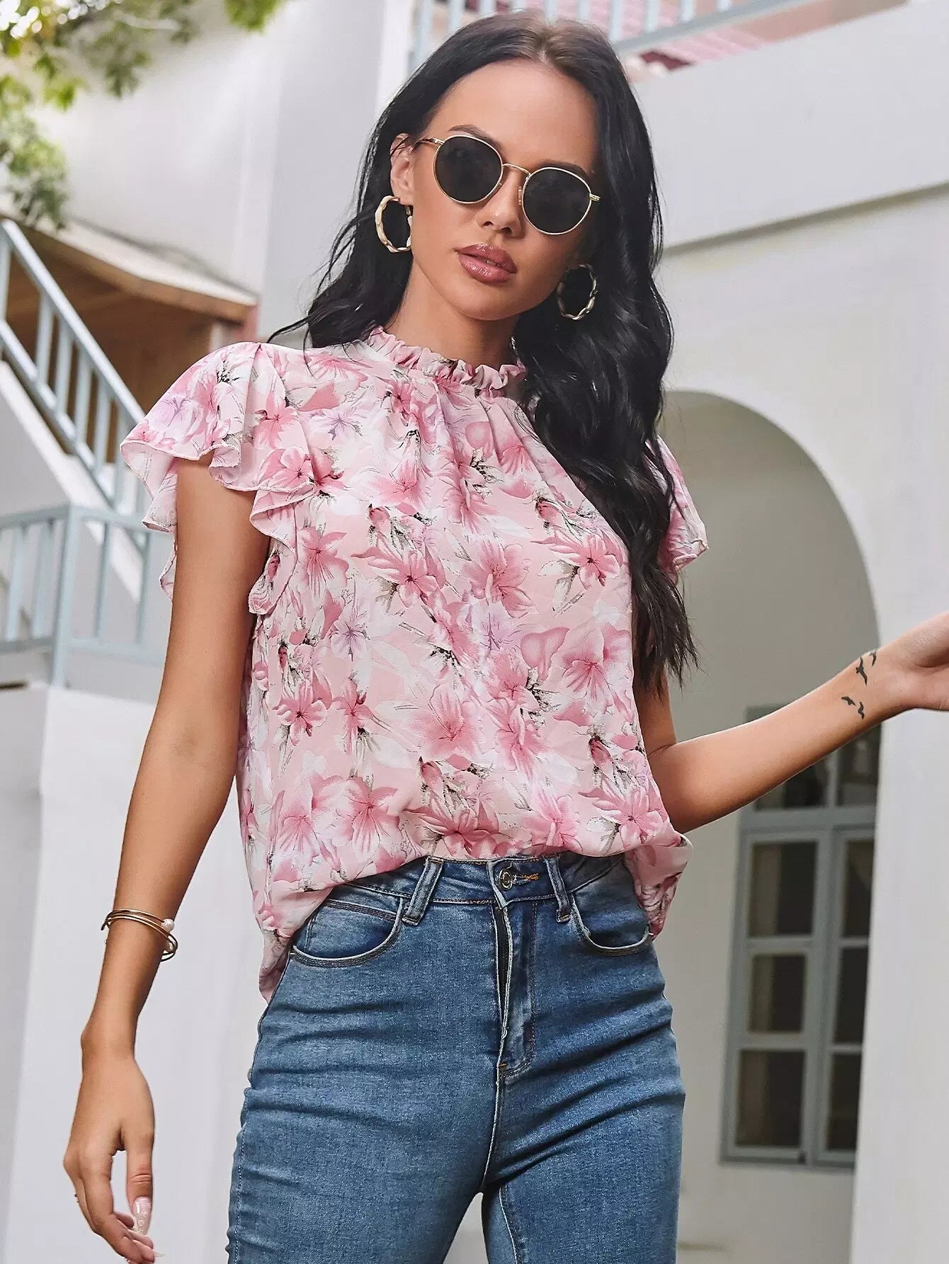 Floral Flounce Sleeve Top