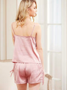 Women - Floral Lace Detail Bralette Cami Top With Shorts Pajama Set