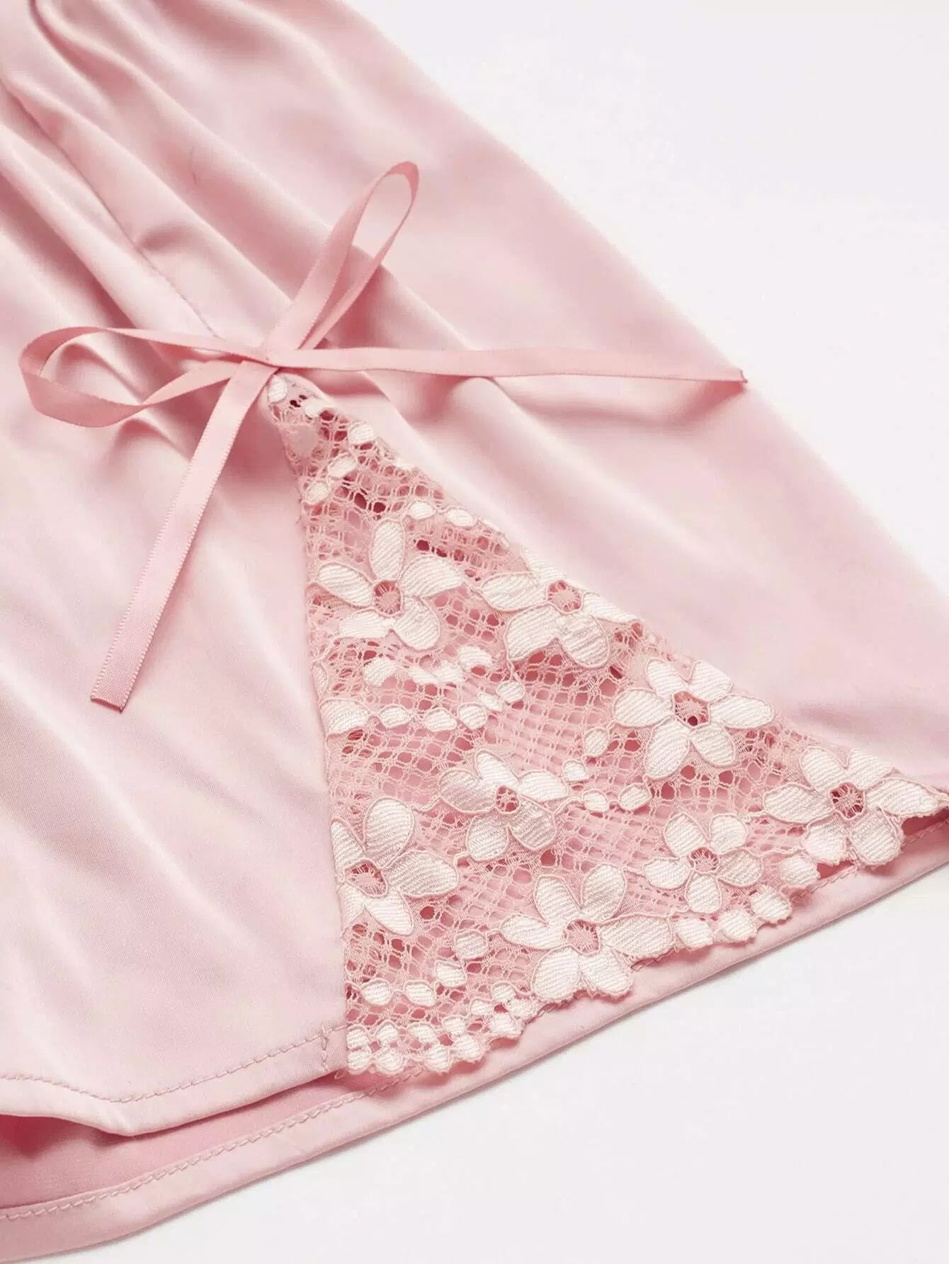 Floral Lace Detail Bralette Cami Top With Shorts Pajama Set
