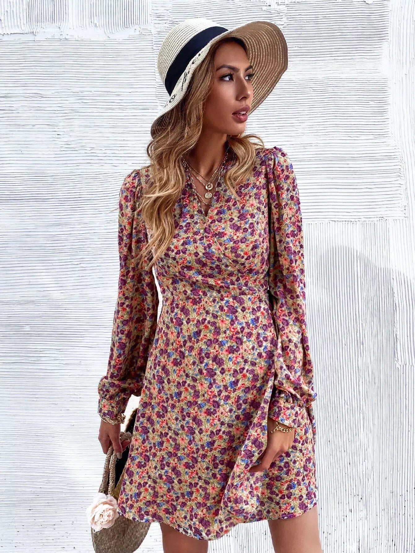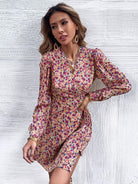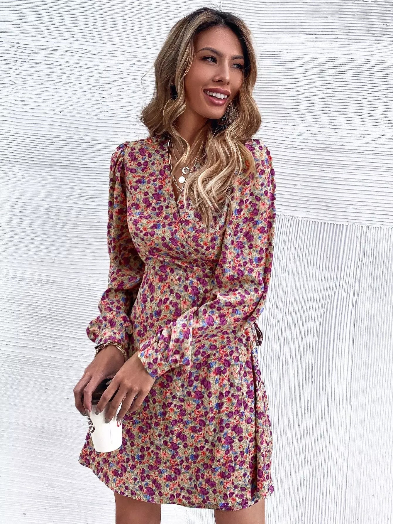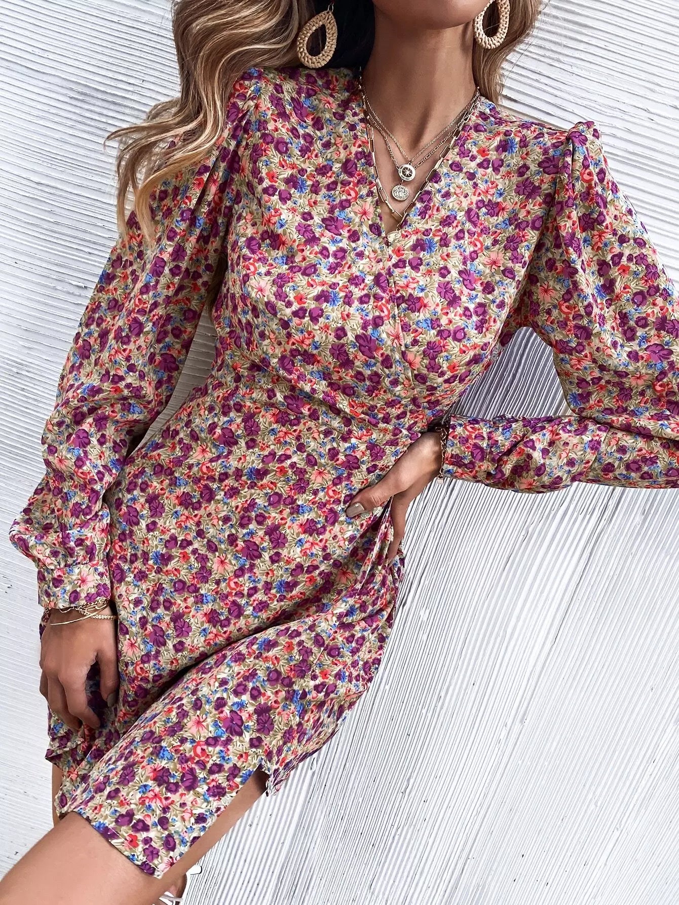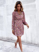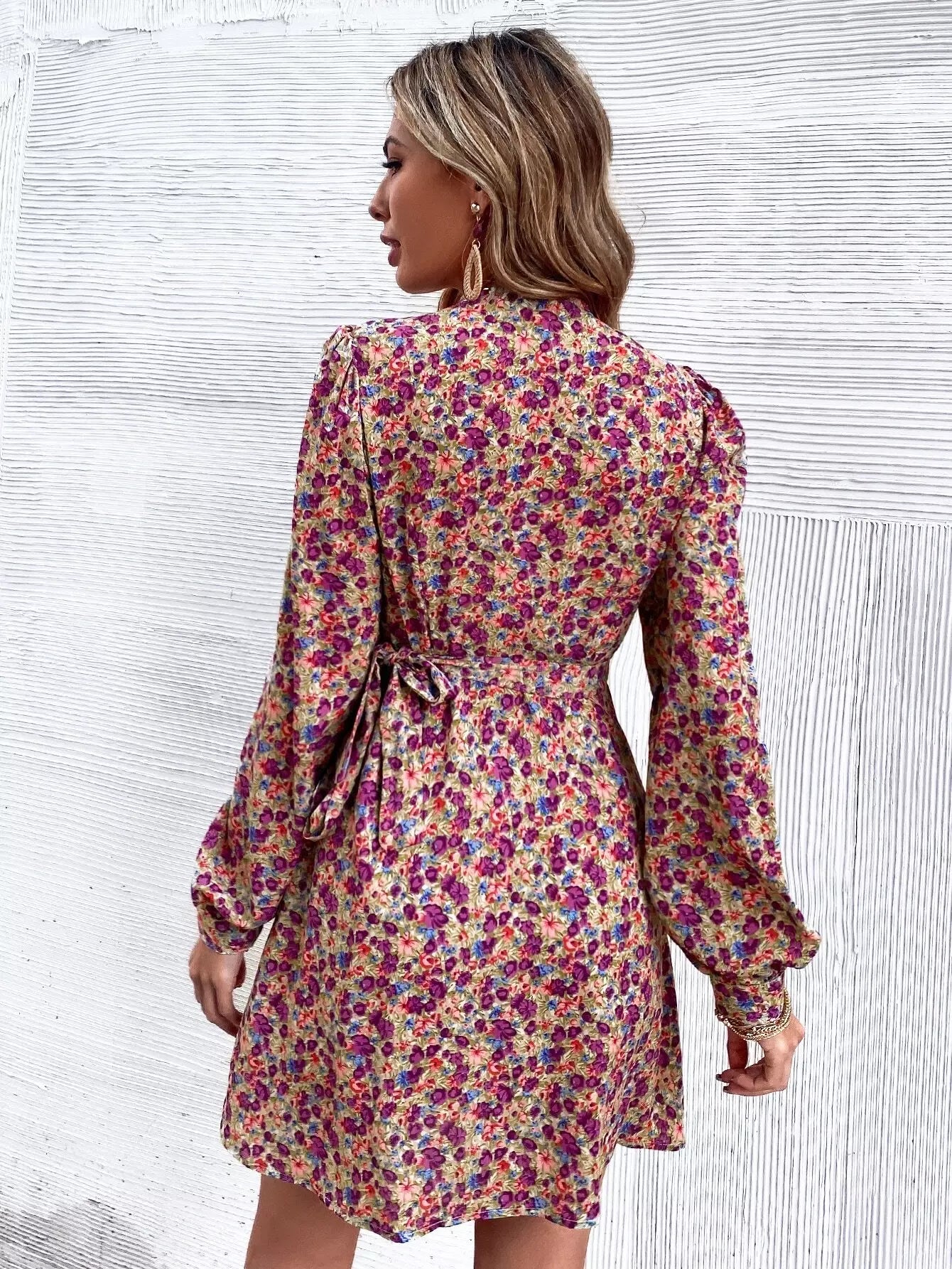 Floral Print Bishop Sleeve Wrap Dress