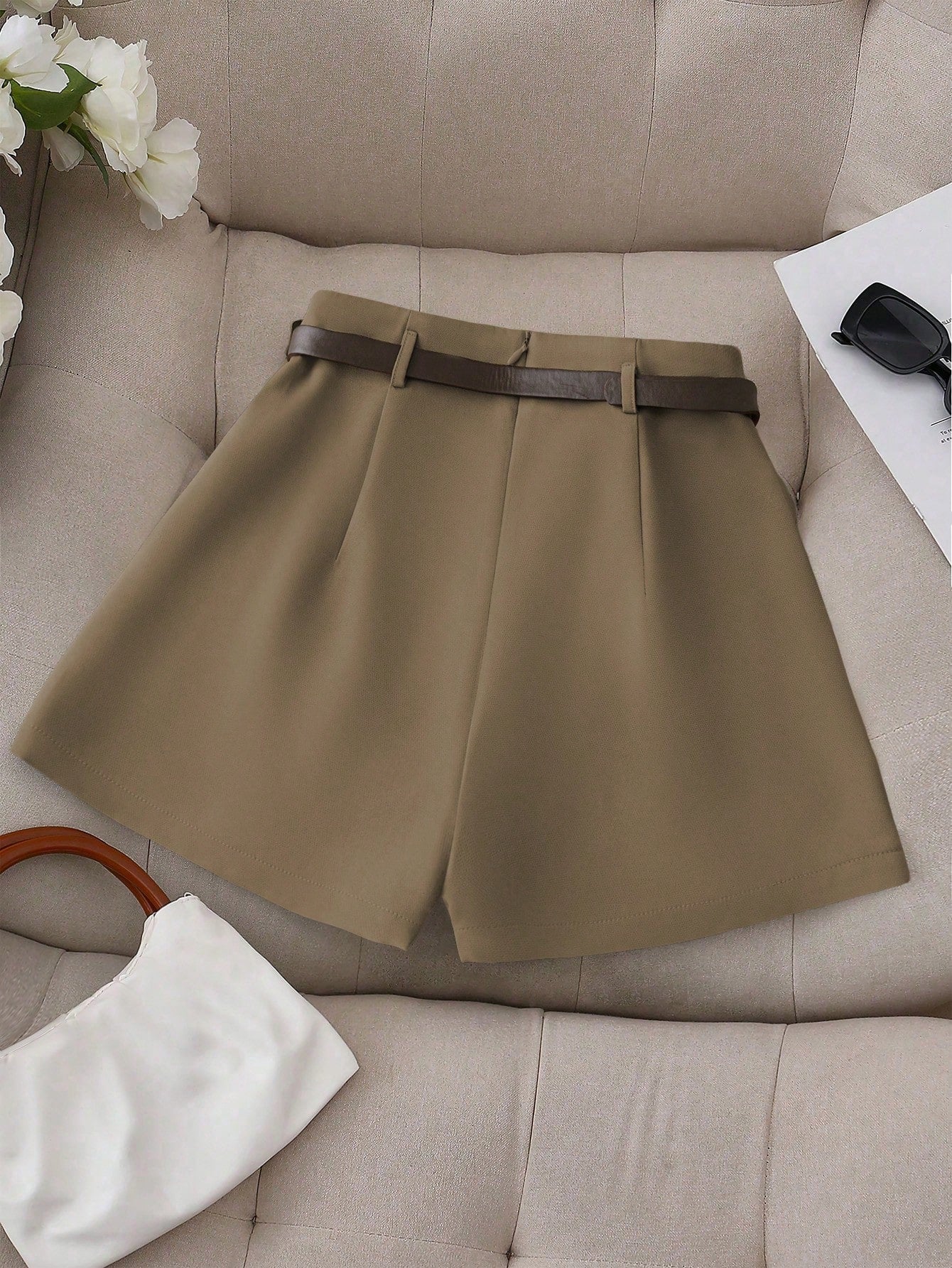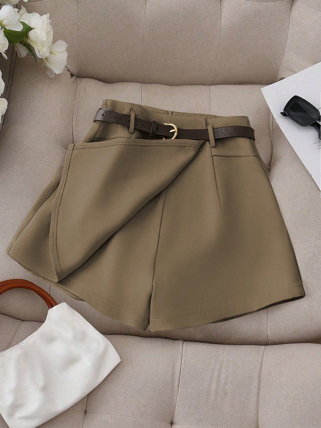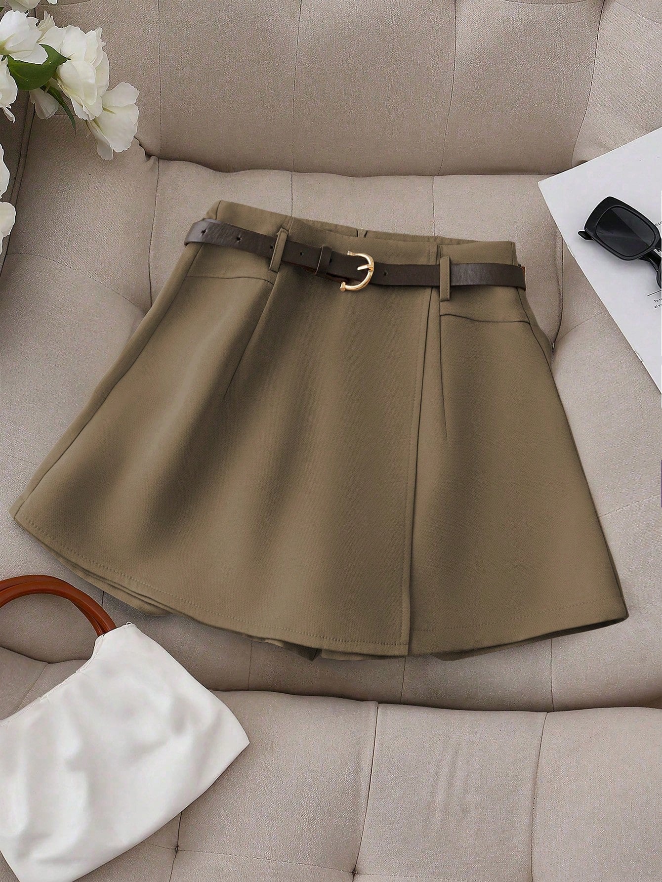 Franclia Women's Casual Plain Color Faux Pocket Culotte Shorts With Belt