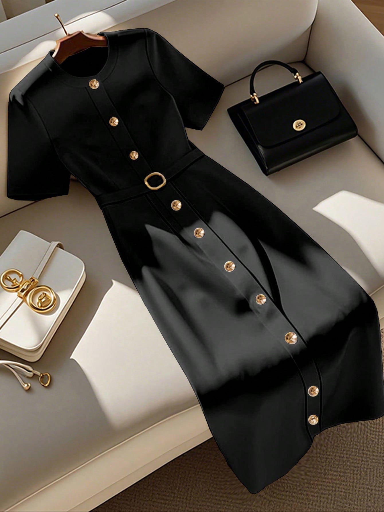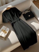 GlowEve Women's Solid Color Short Sleeve Single-Breasted Casual Commuting Mid-Length Dress