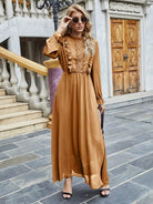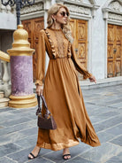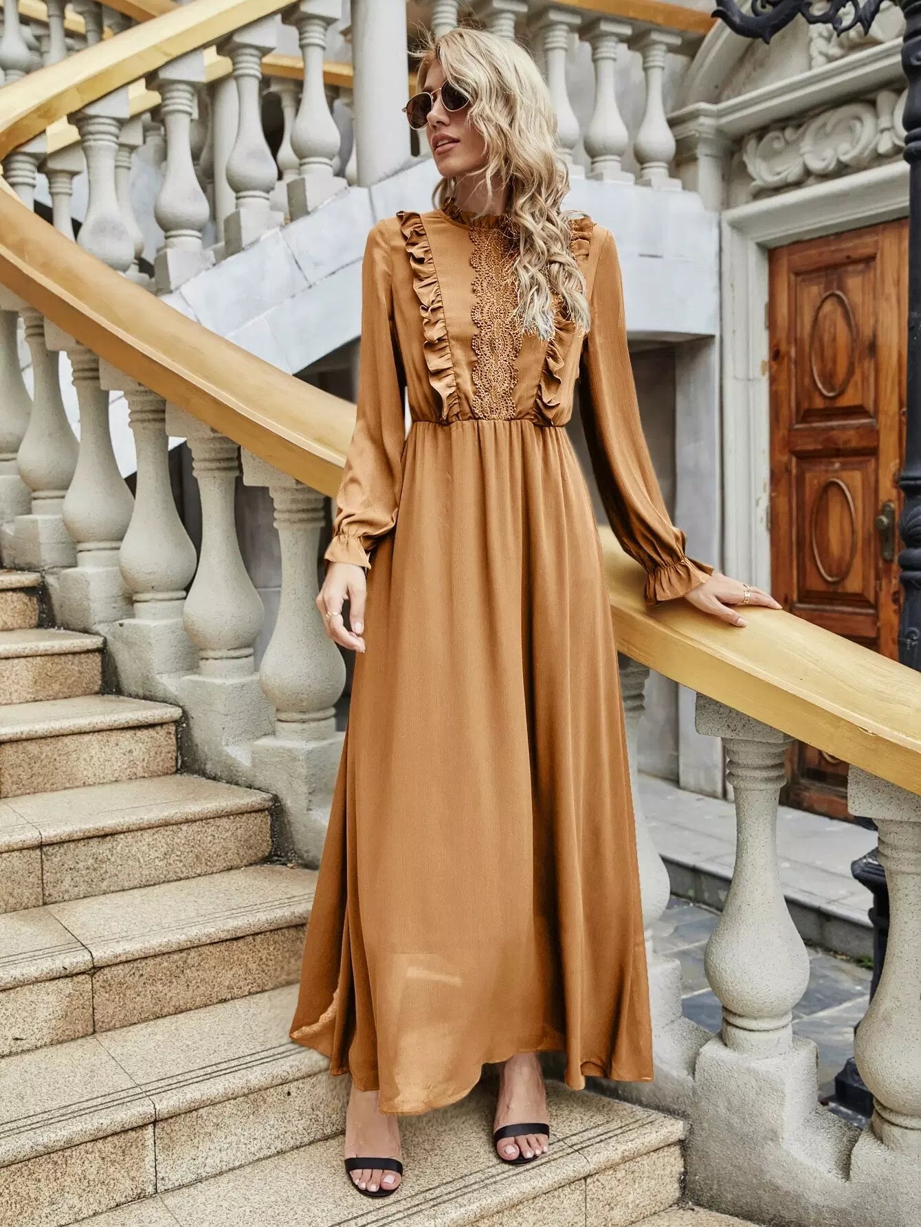 Guipure Lace Ruffle Trim Keyhole Back Dress