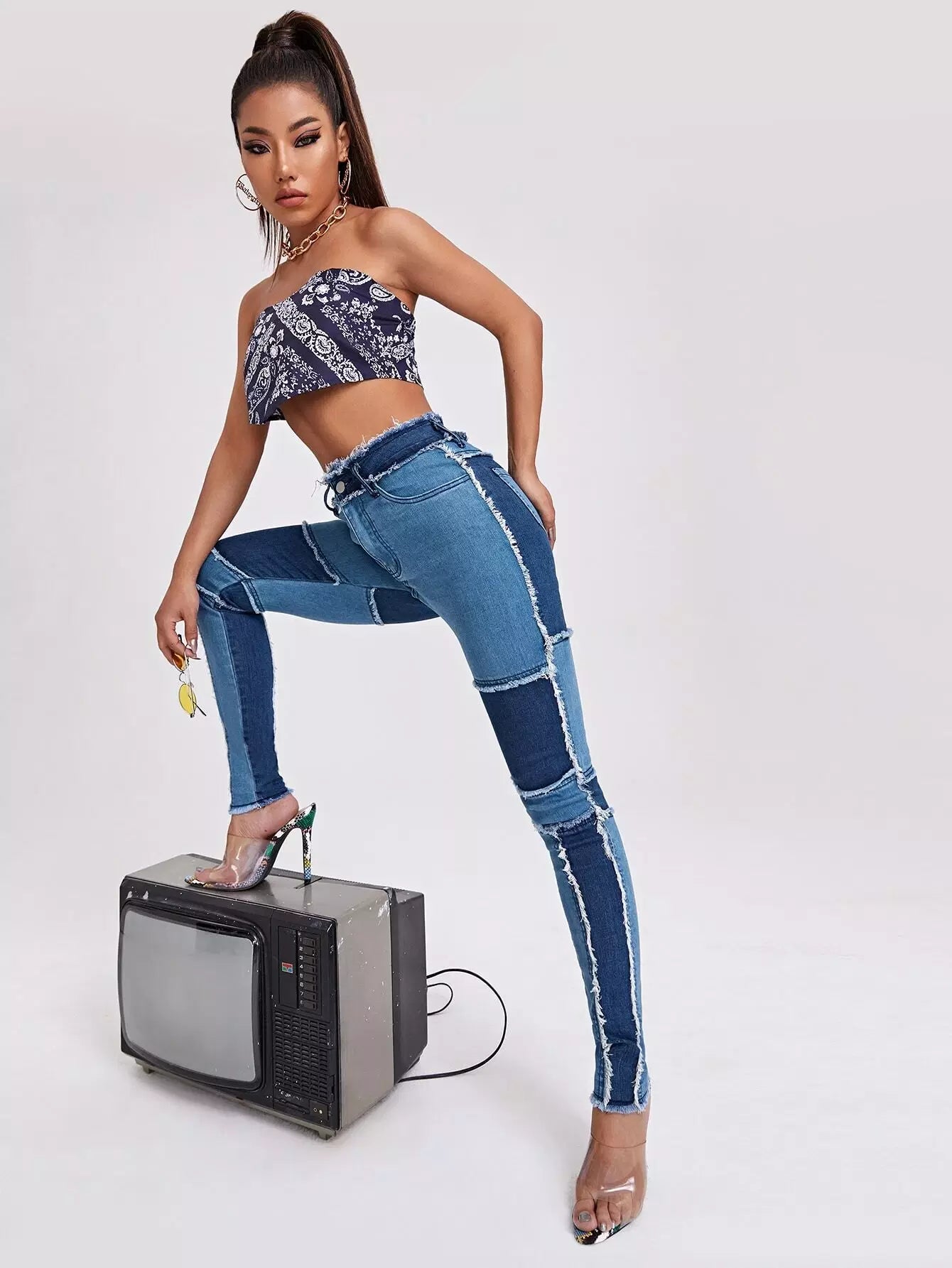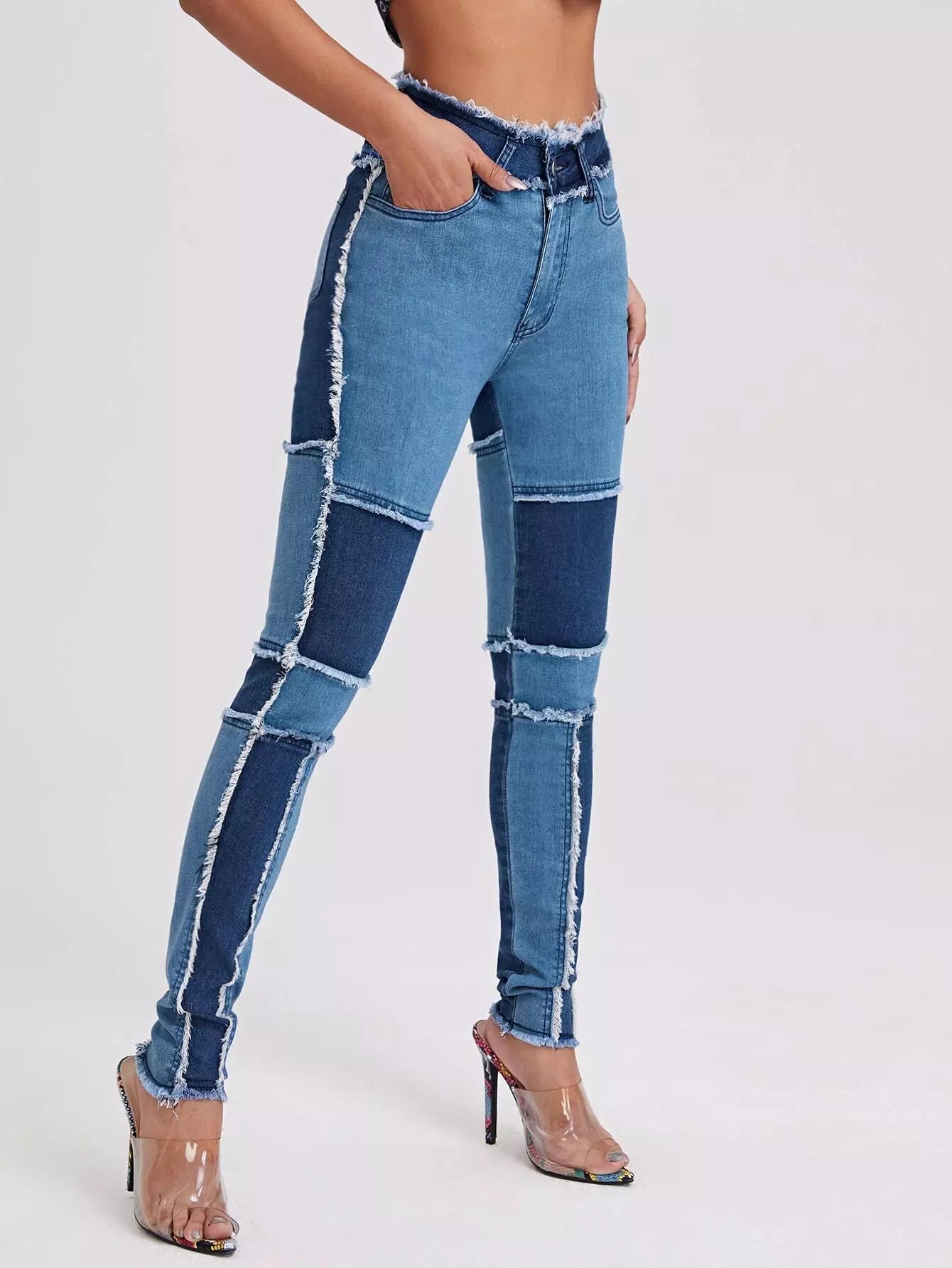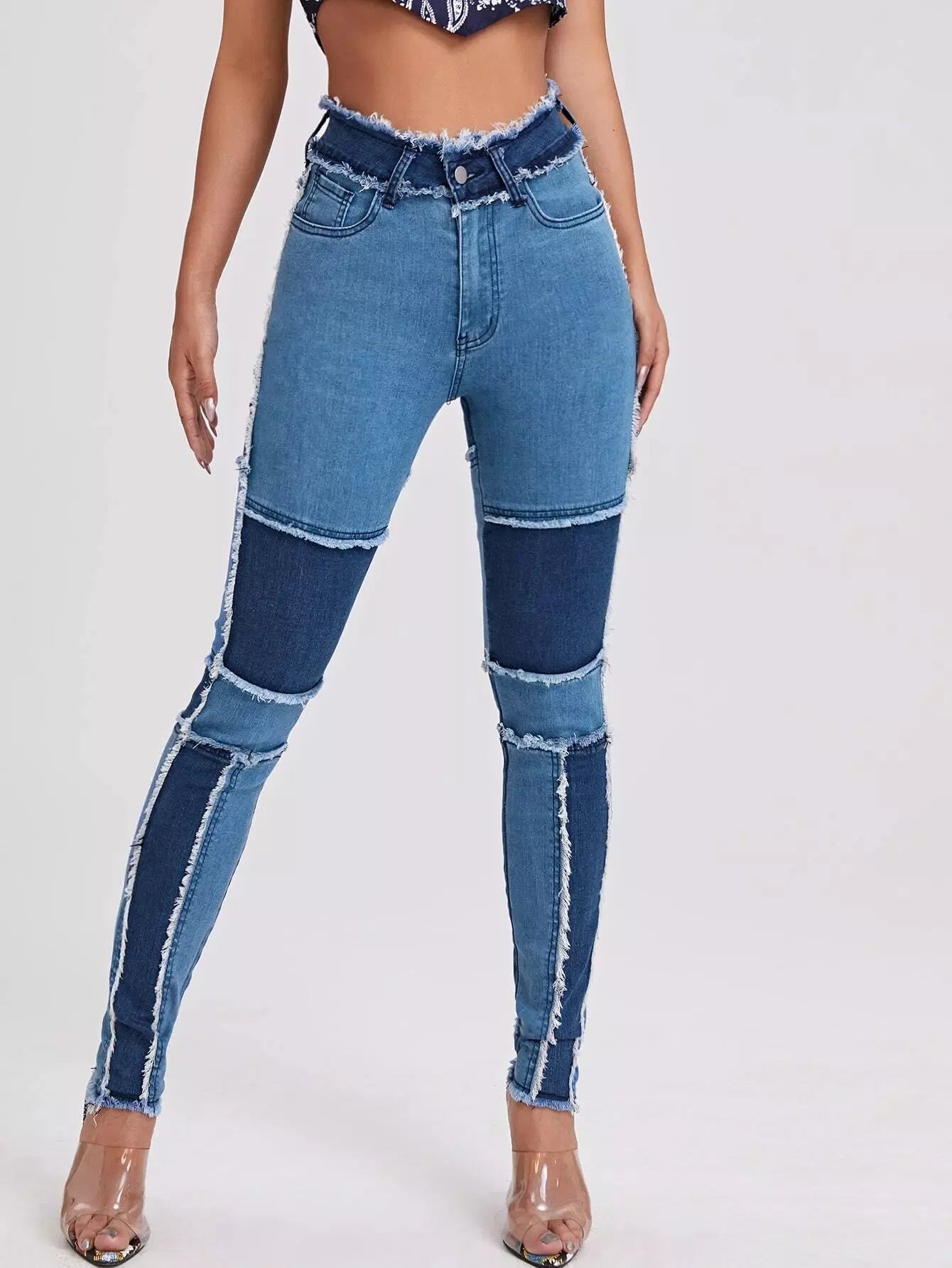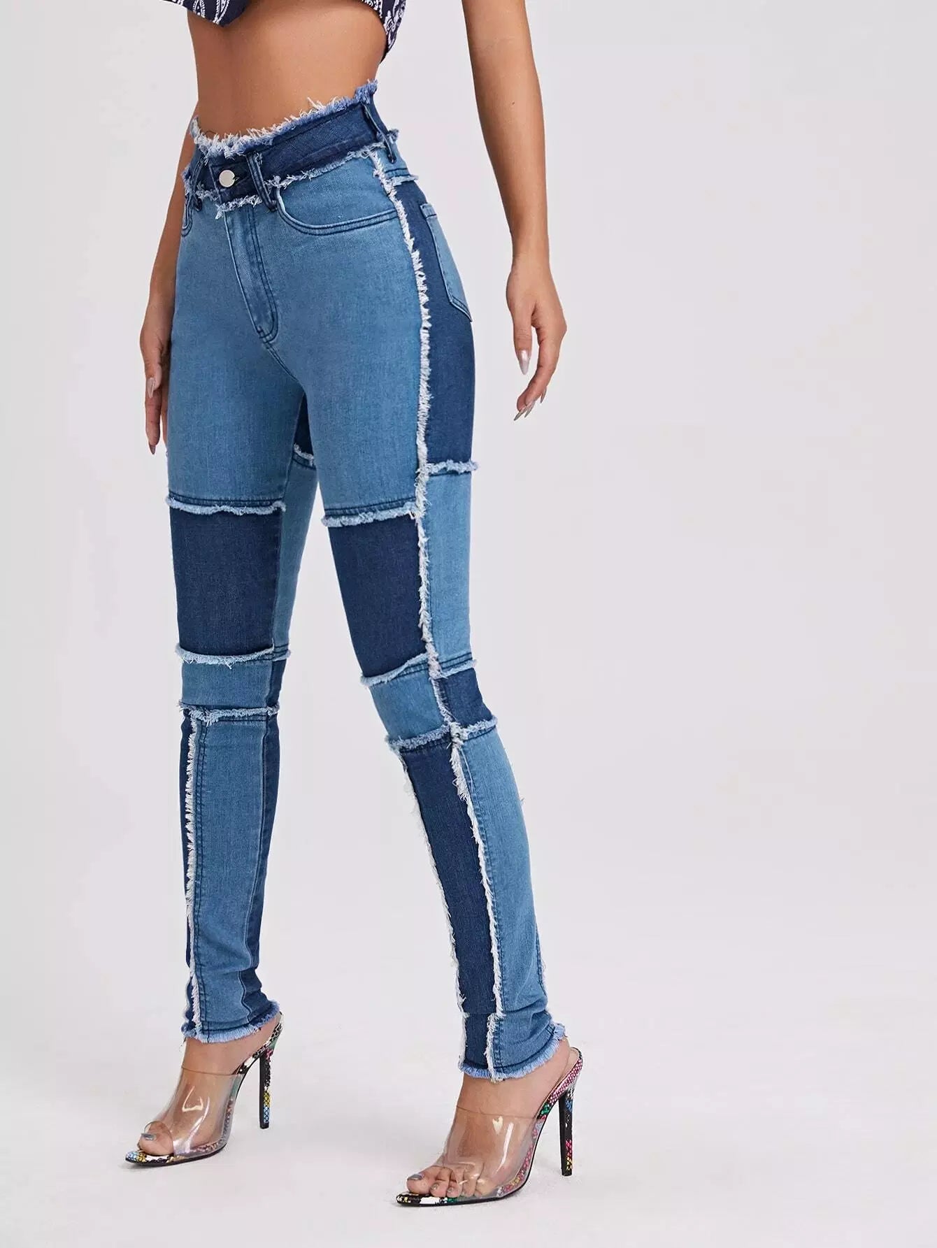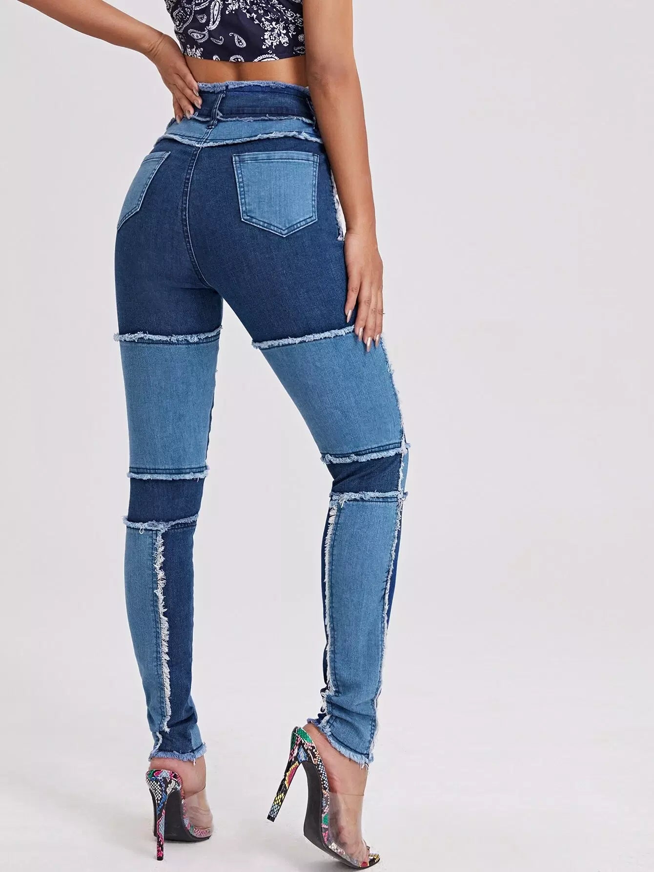 High Waist Colorblock Spliced Skinny Jeans
