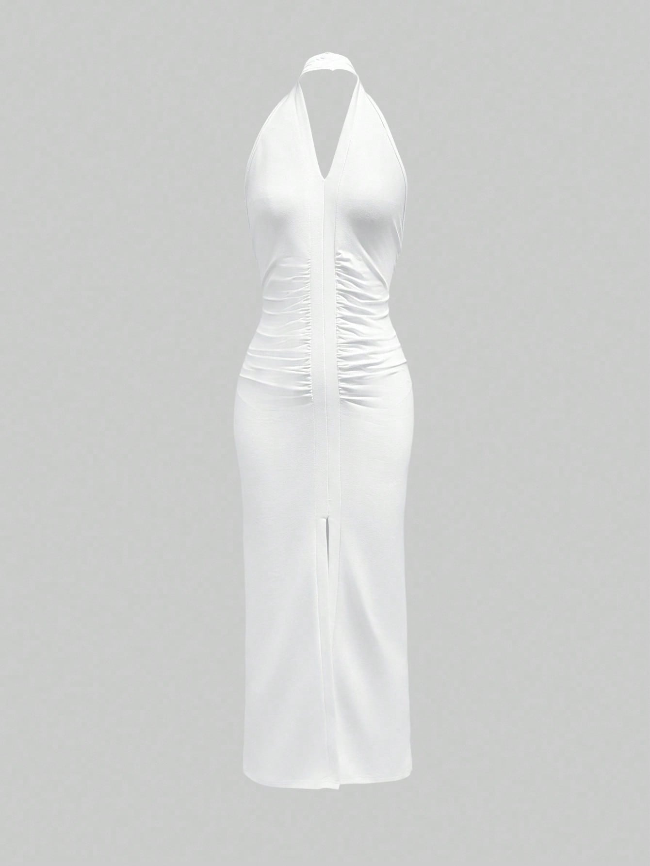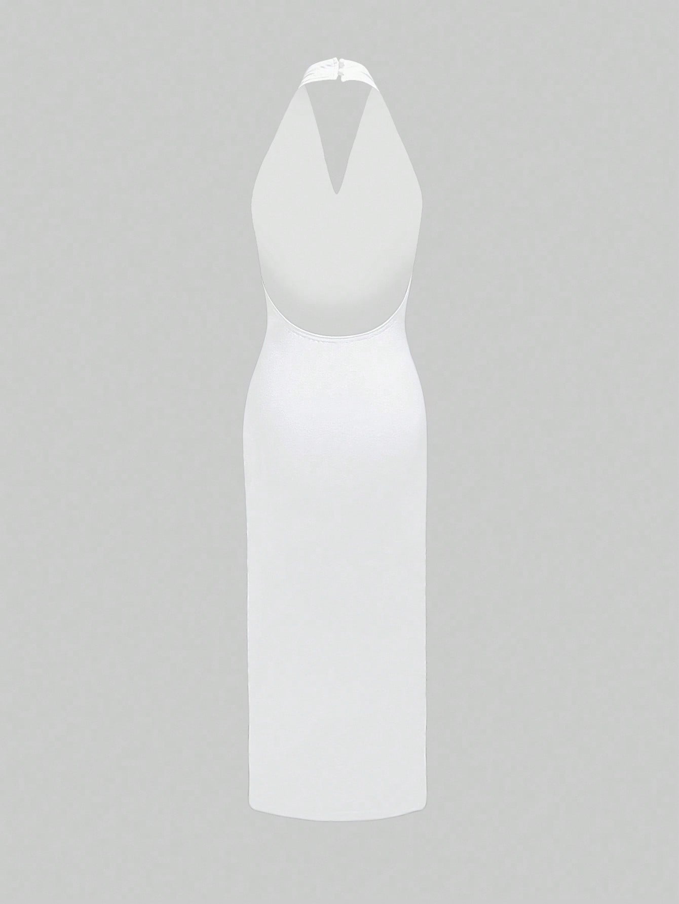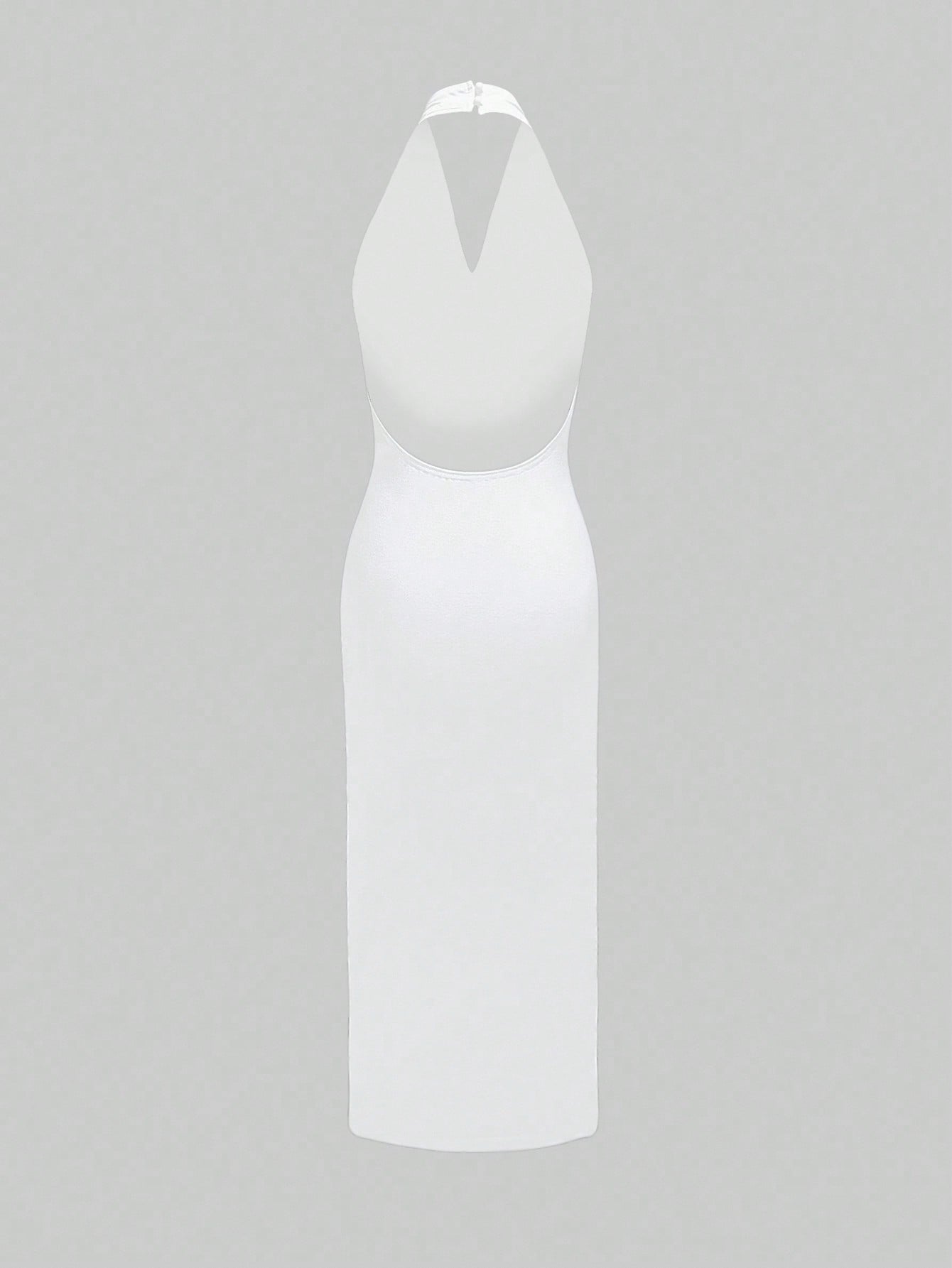 INAWLY Elegant Sexy Women's Solid Color Backless Split Dress For Valentine's Day