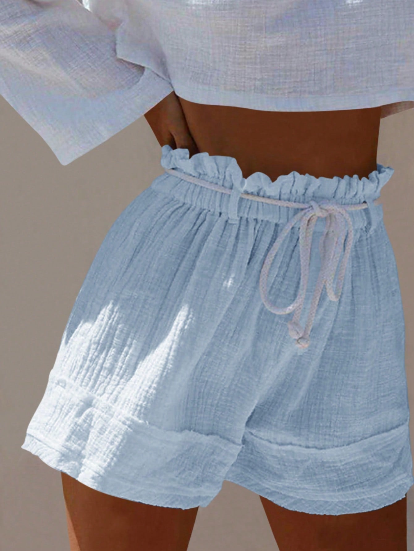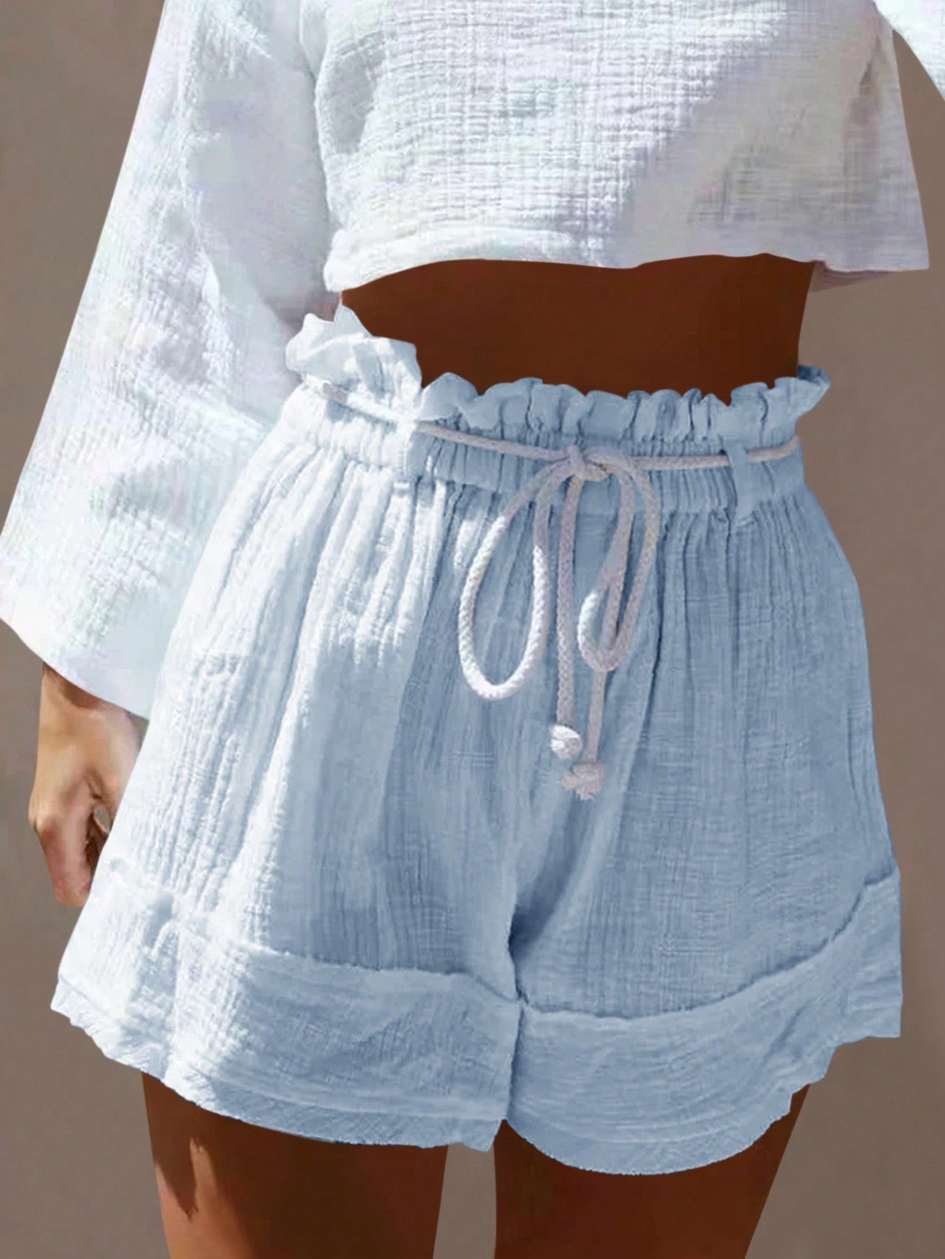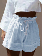 INAWLY Women's Solid Color Simple Daily Mini Shorts With Flounced Edges