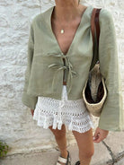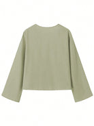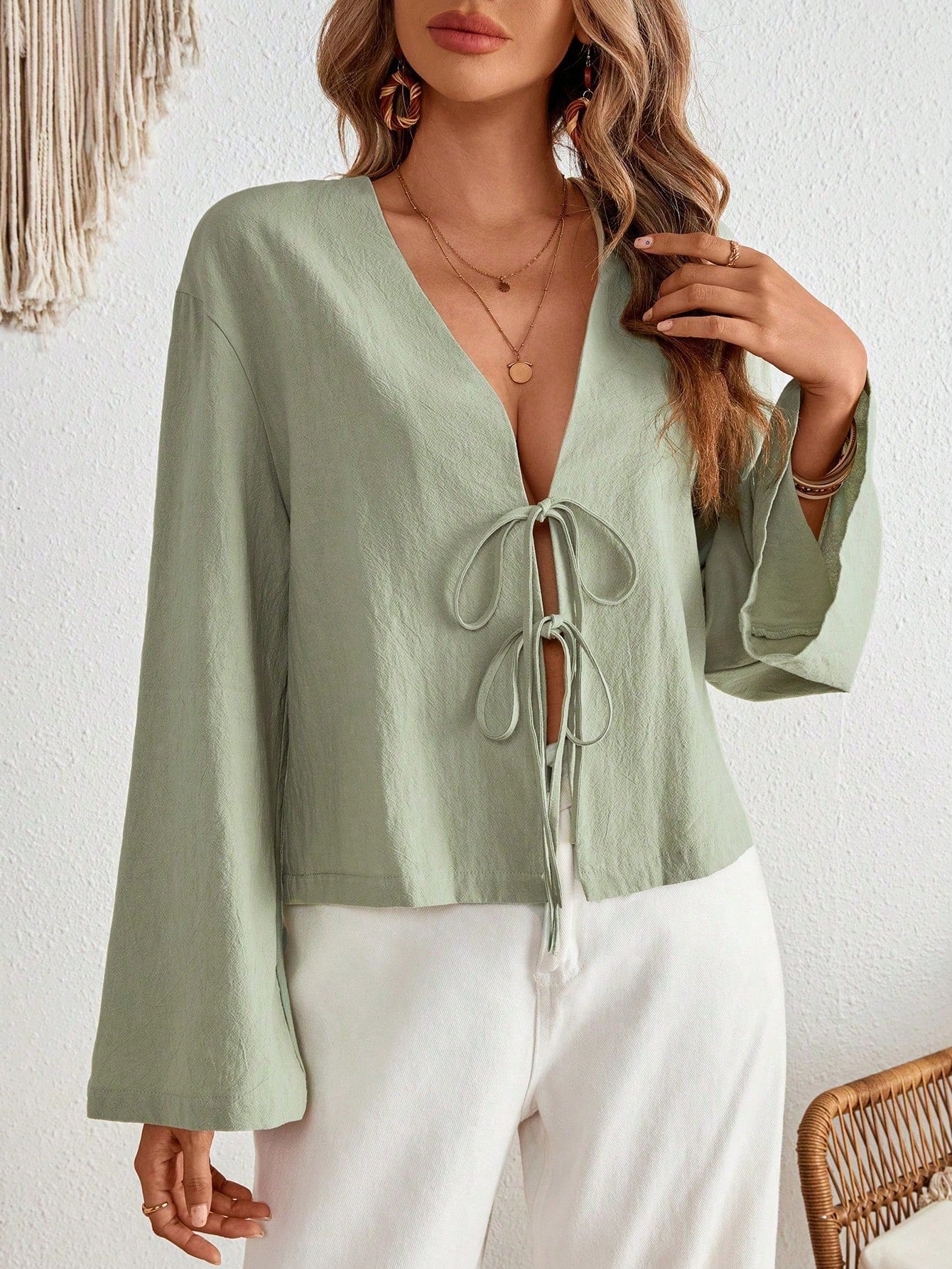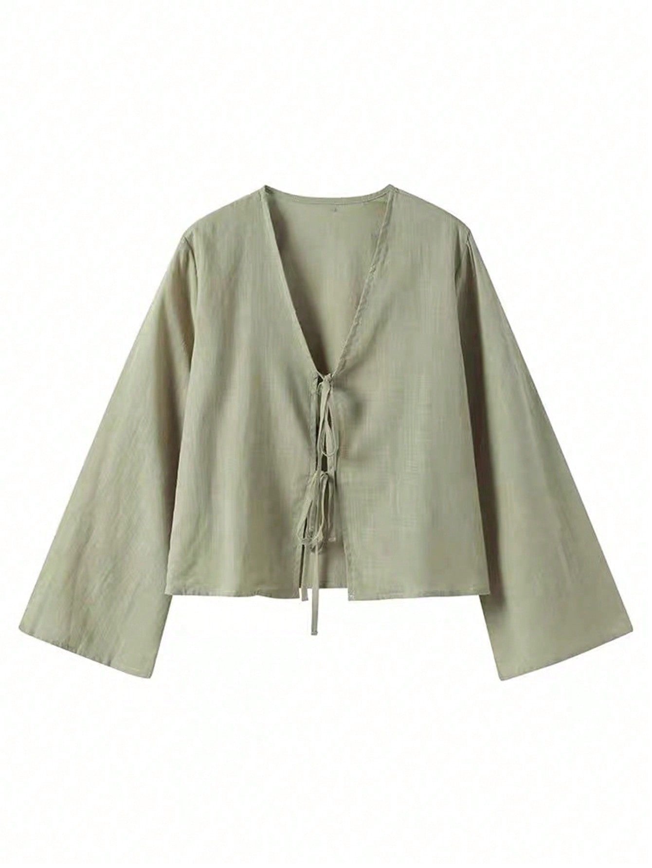 INAWLY Women's Vacation Casual Solid Color Tie Front Flare Sleeve Blouse Women Shirt