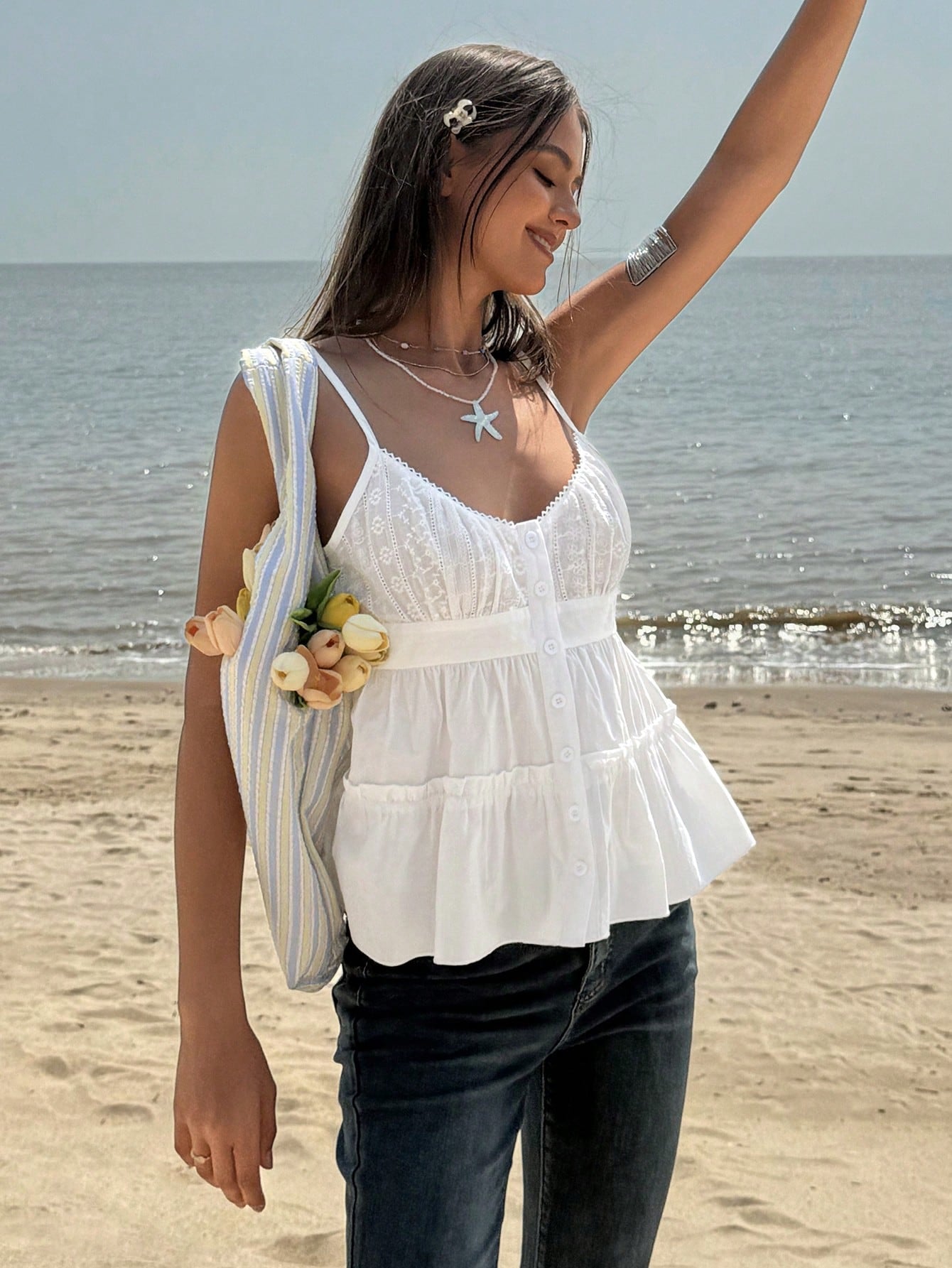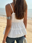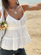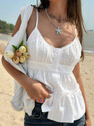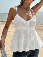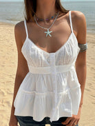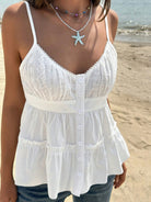 Jouncy 1pc Women's Casual Solid Color Embroidery Patchwork Cami Top