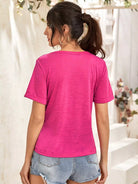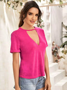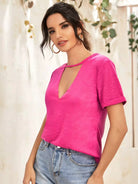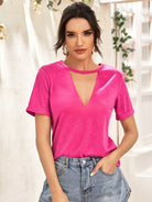 Keyhole Neck Rolled Sleeve Top