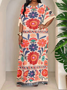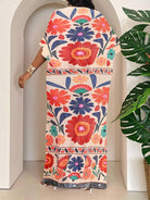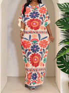 Lady Spring And Summer Casual Elegant Bohemian Style Multi-Color Notched Straight Bat Sleeve Robe Dress