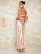 L'Amorae Floral Satin Tube Split Thigh Dress, Minimalist And Fashionable For Summer