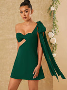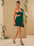 women L'Amorae Green Asymmetric Flared Mini Dress Inner Ruched Top Two Pieces Christmas Set