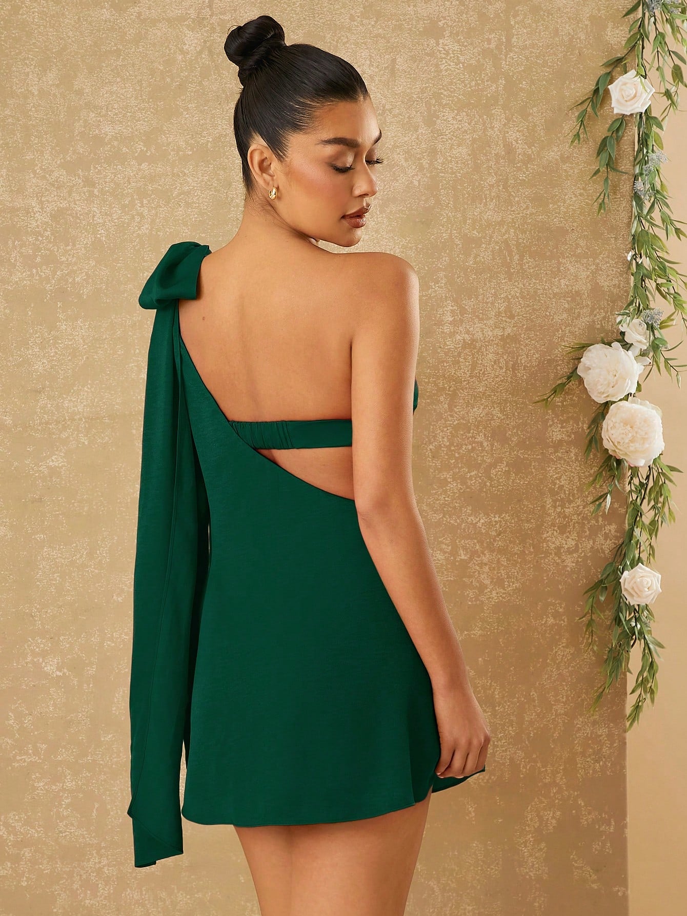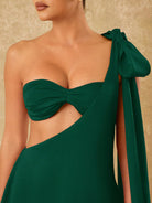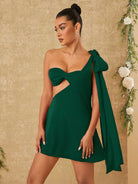 L'Amorae Green Asymmetric Flared Mini Dress Inner Ruched Top Two Pieces Christmas Set