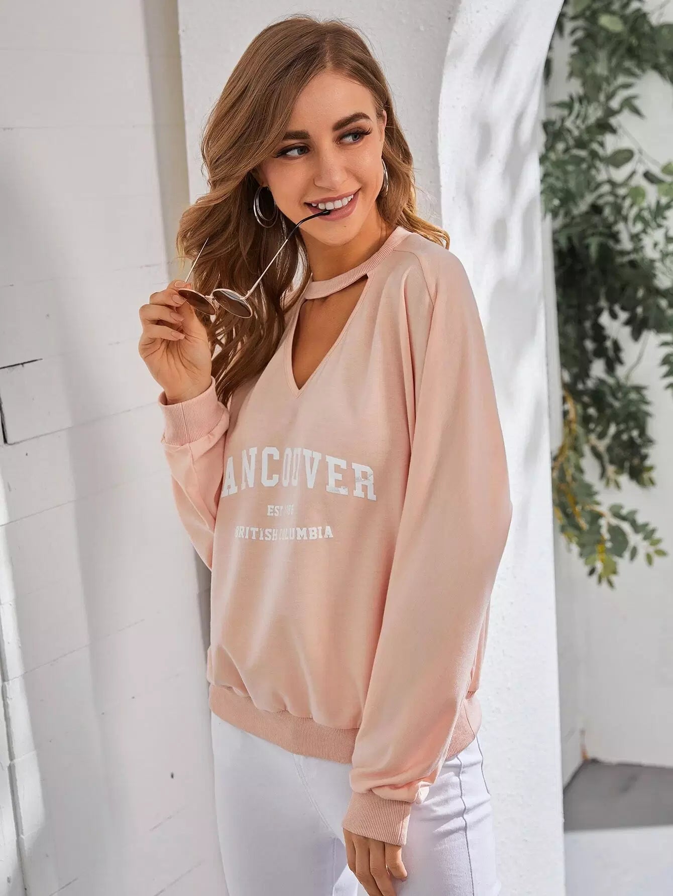 Letter Graphic Cut Out Sweatshirt