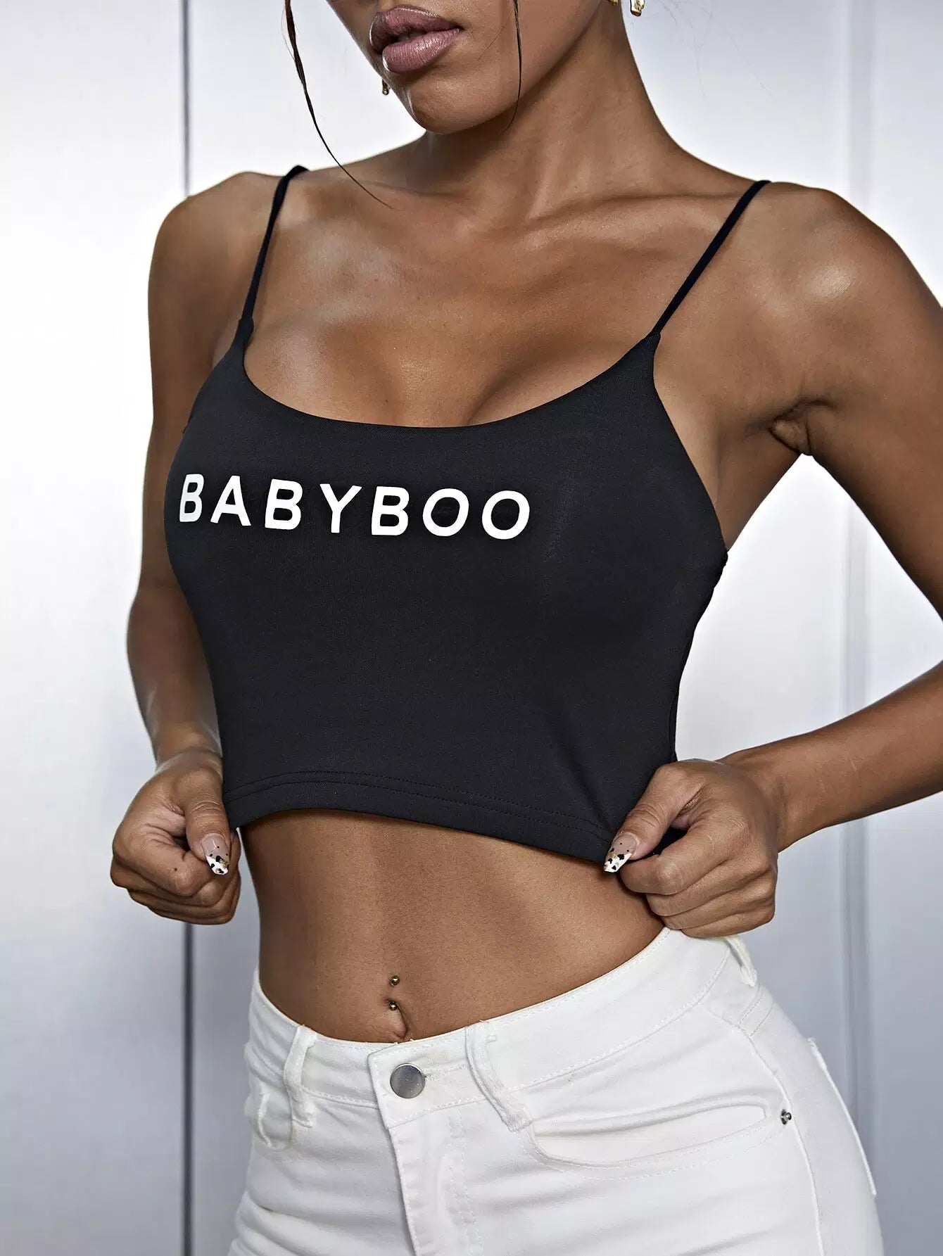 Letter Graphic Lettuce Trim Cami Top