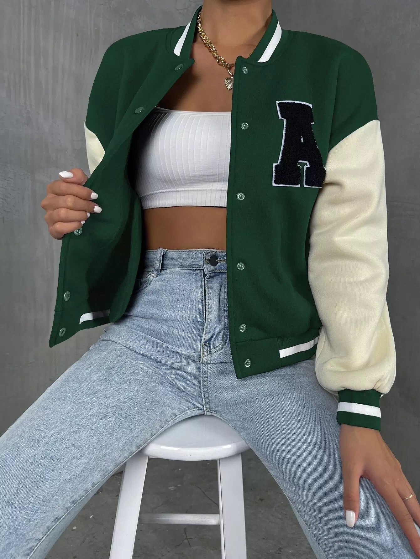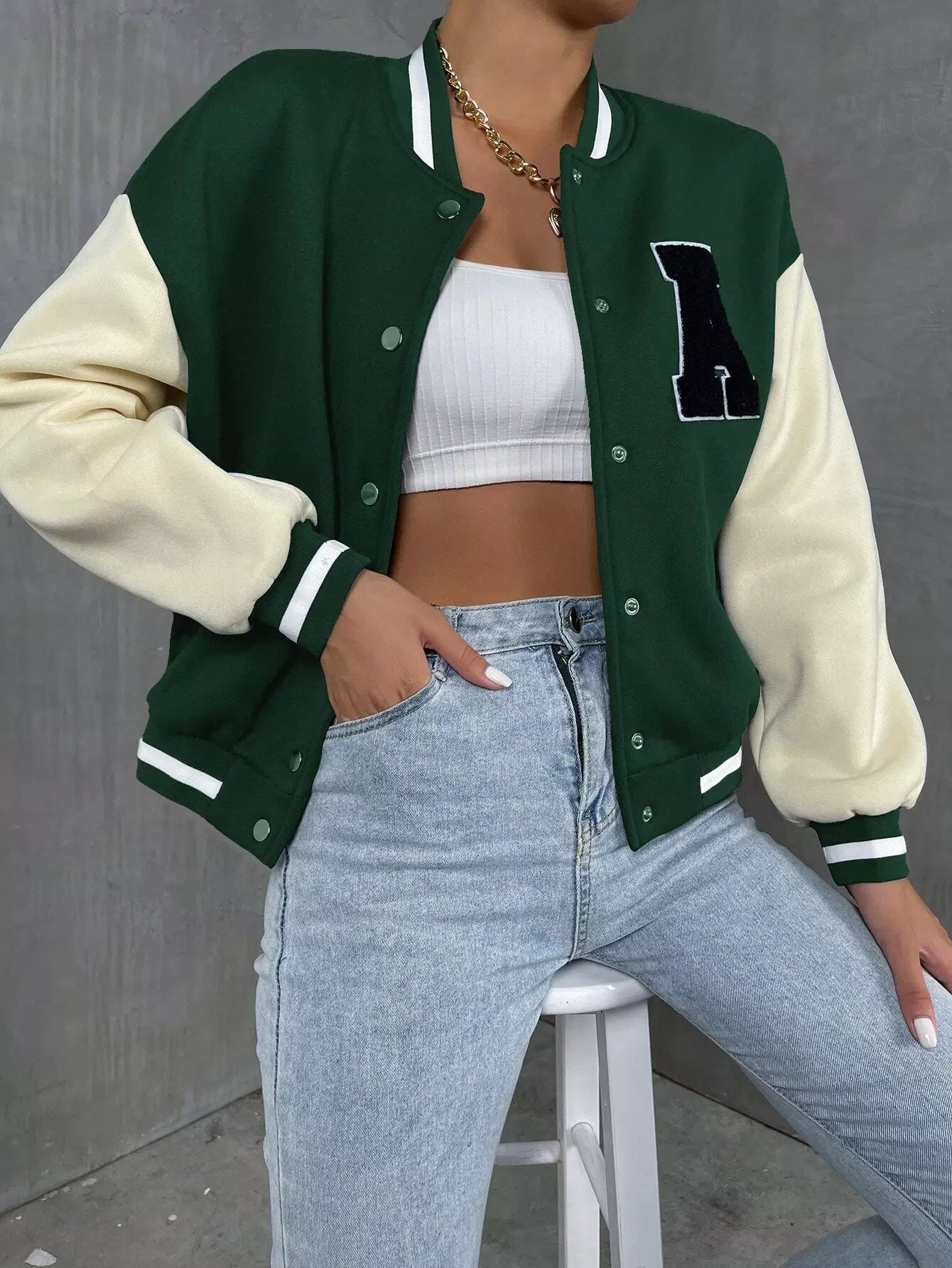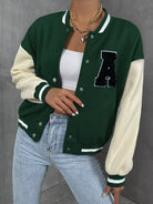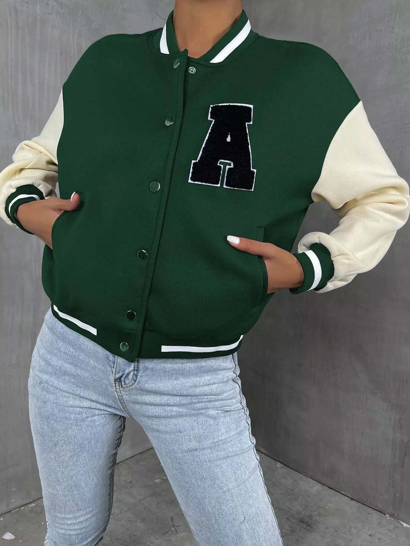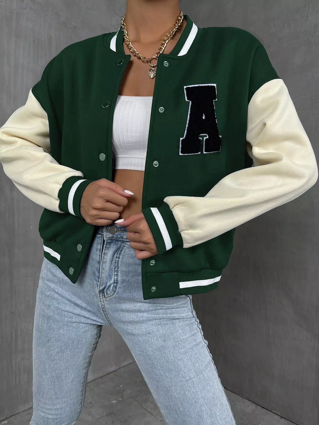 Letter Patch Detail Drop Shoulder Colorblock Varsity Jacket