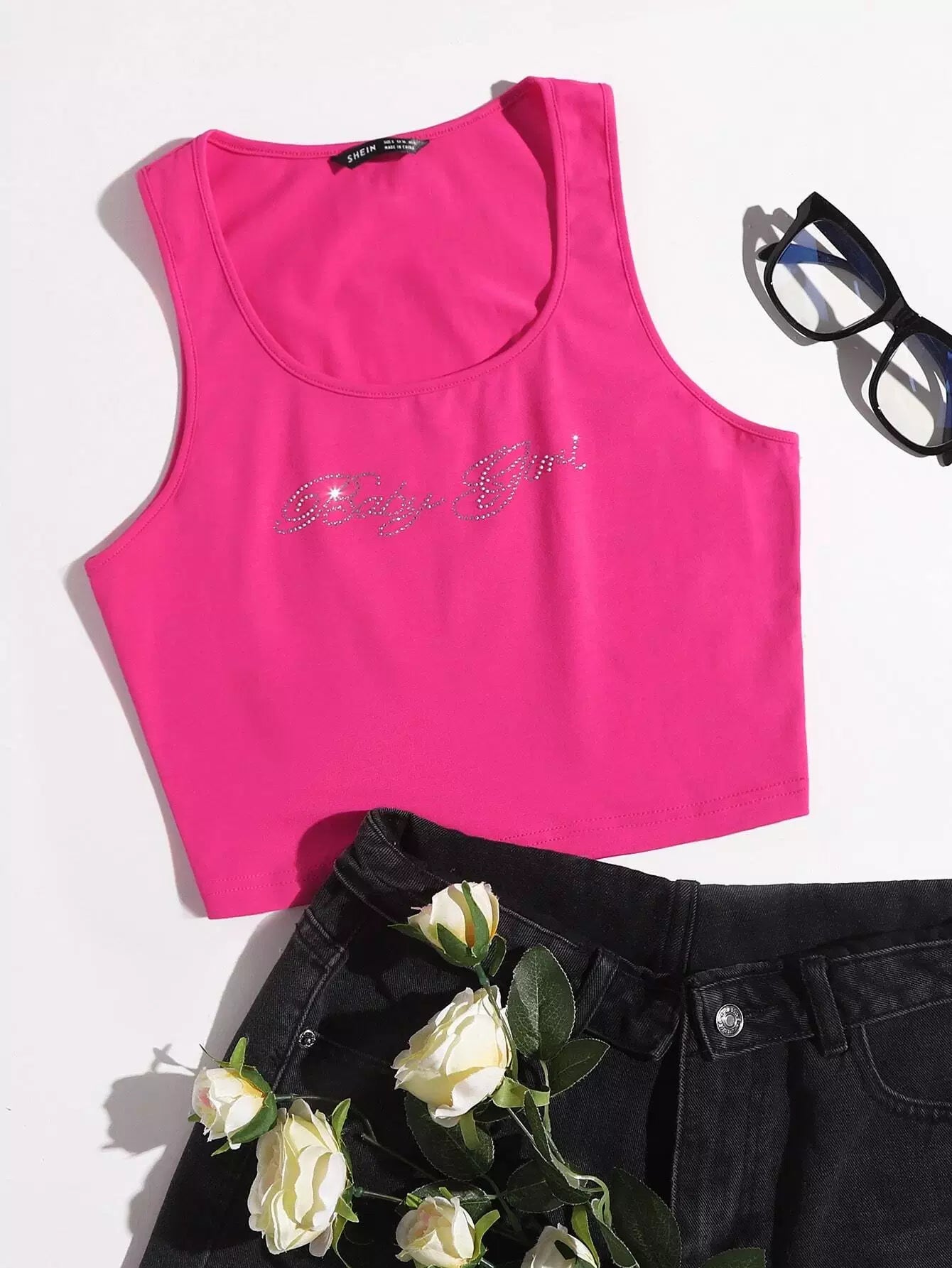 Letter Rhinestone Tank Top