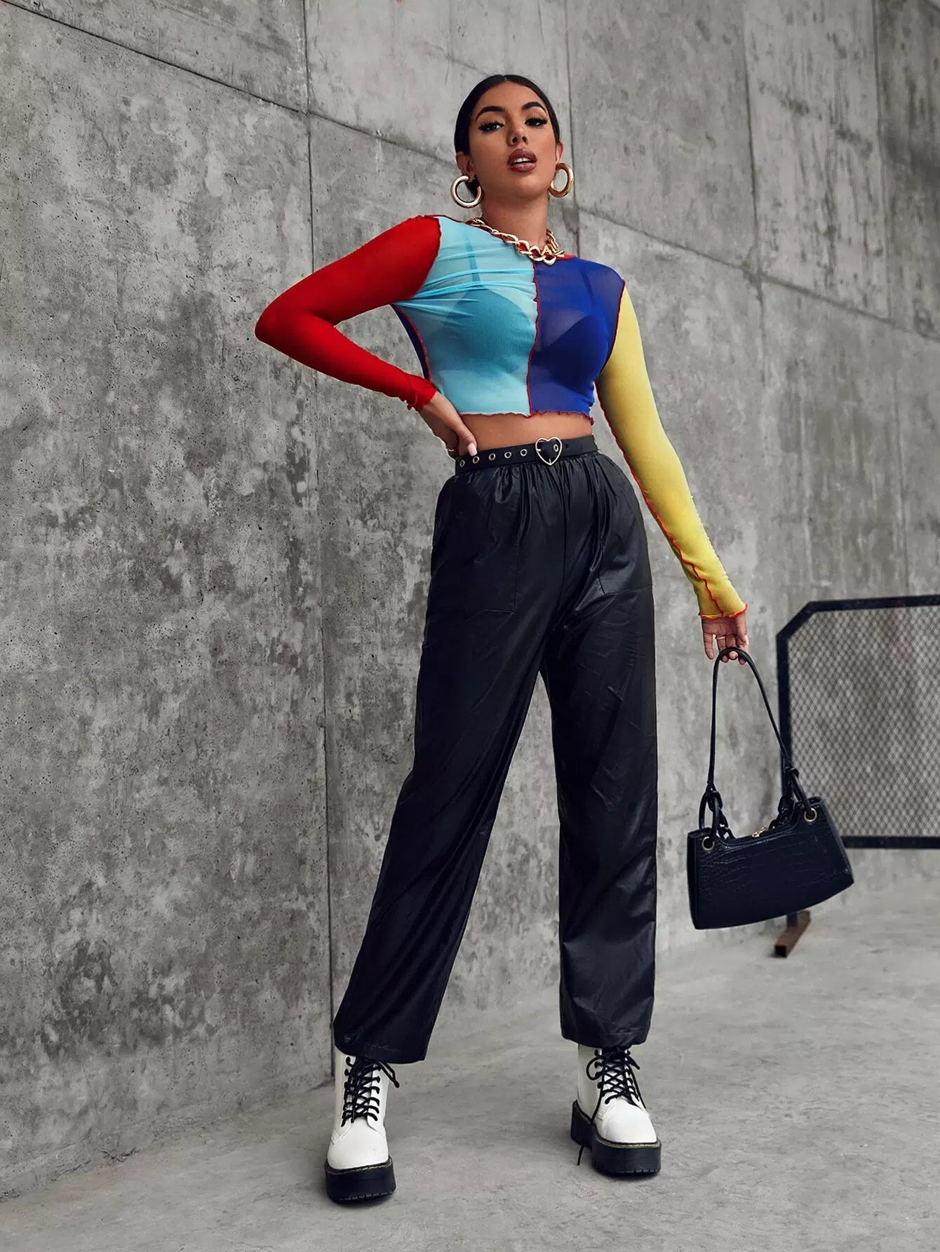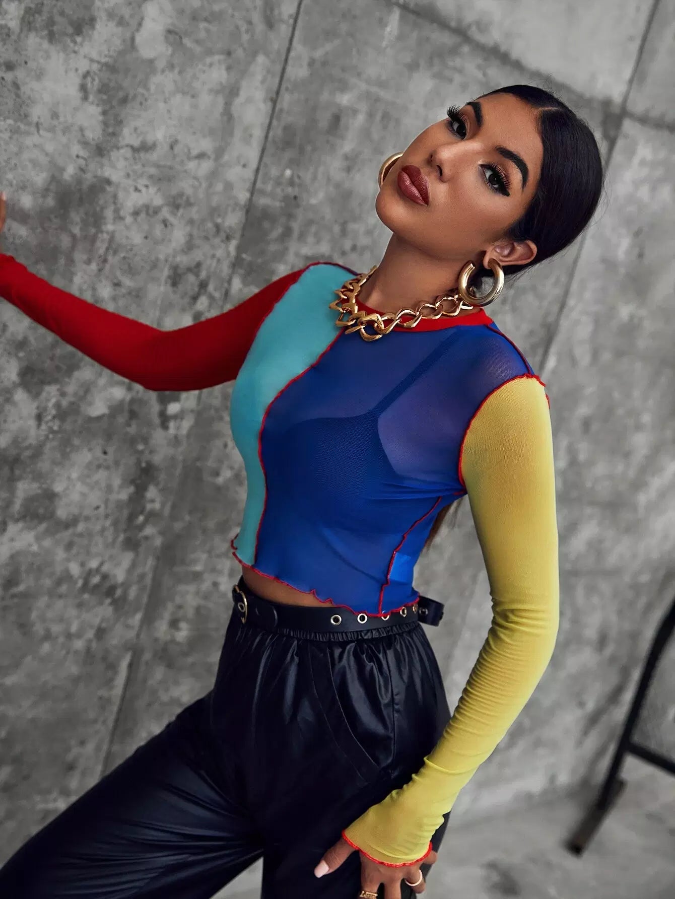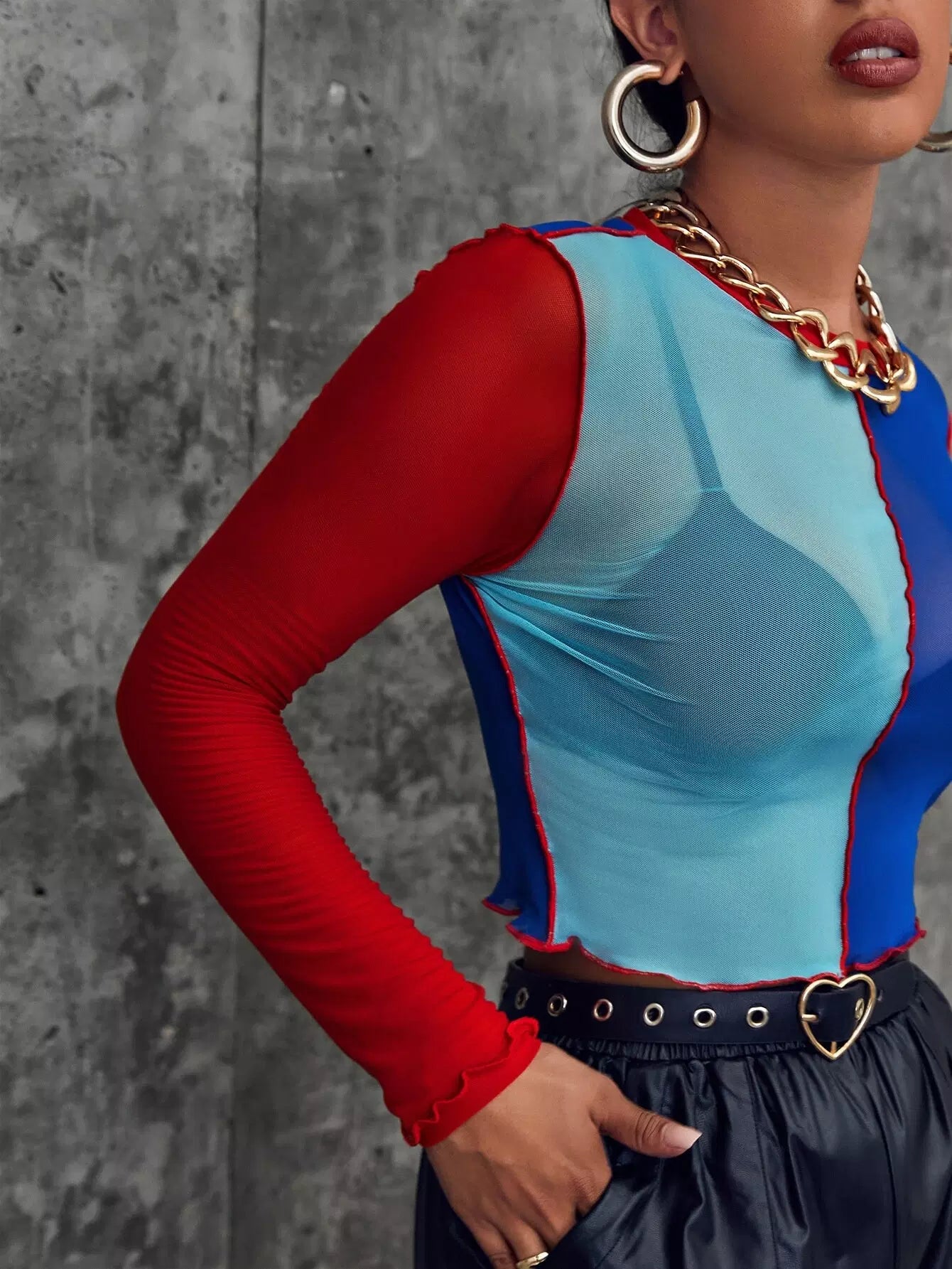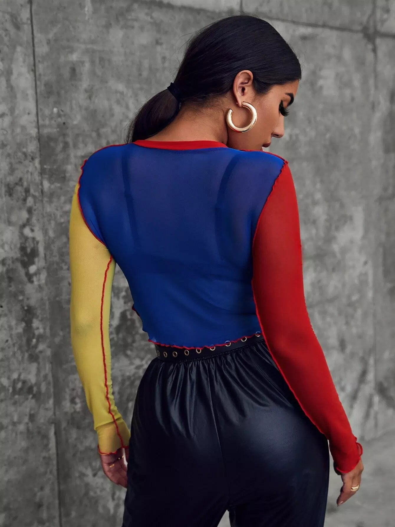 Lettuce Edge Colorblock Mesh Top Without Bra