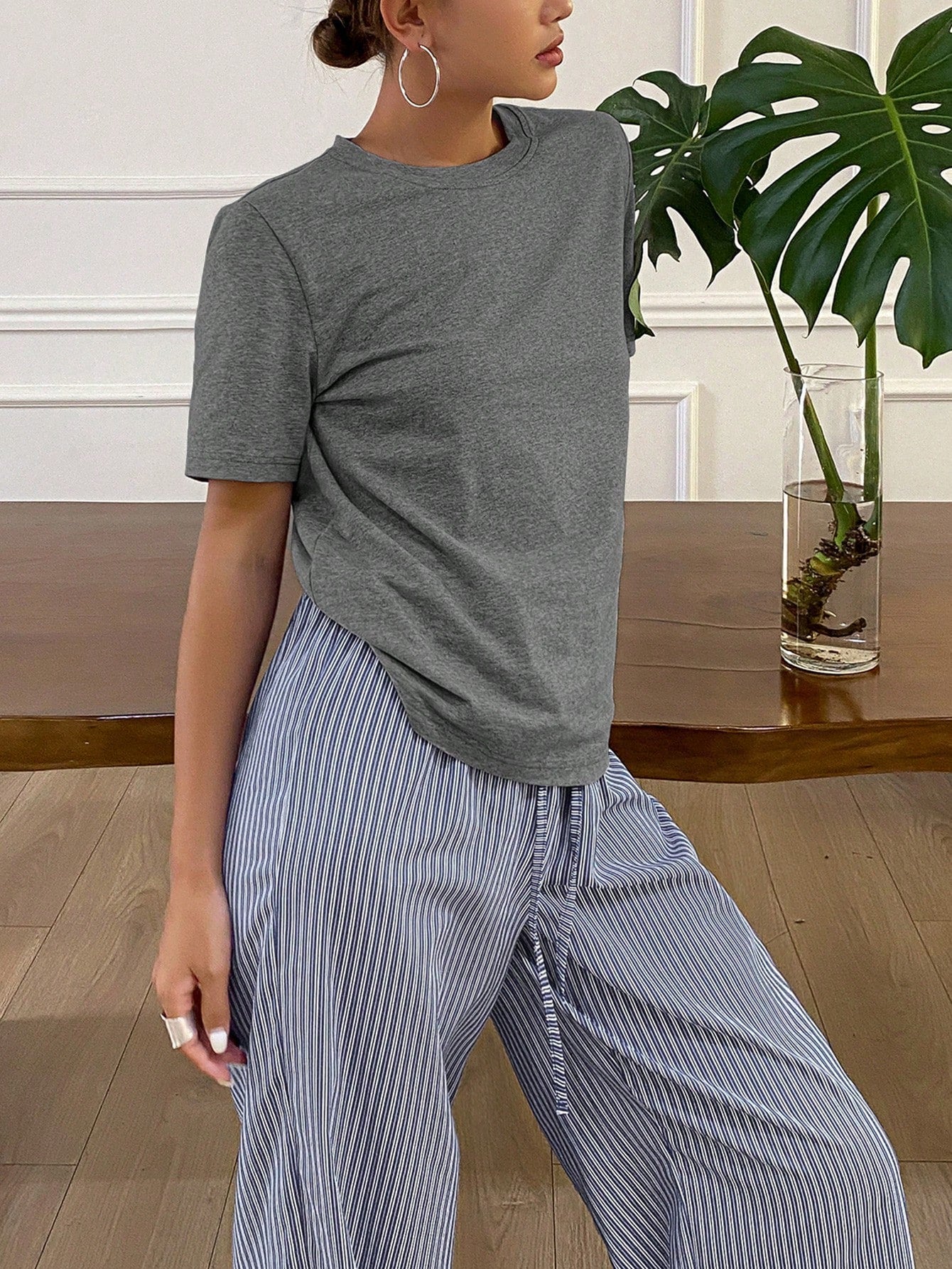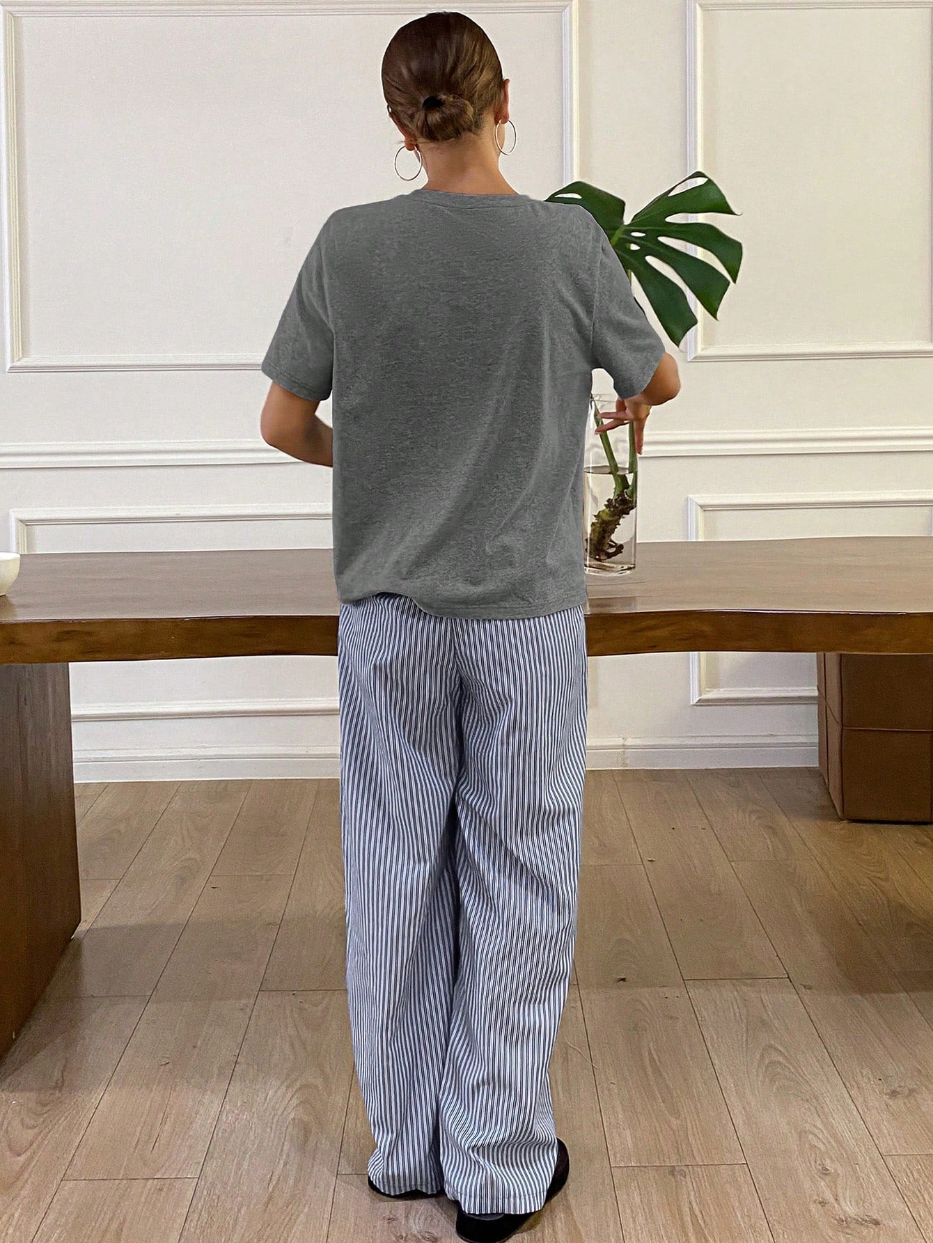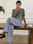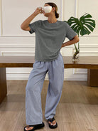 Livesso Minimalist T-Shirt And Striped Pajama Pants Loungewear Set