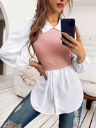LUNE Colorblock Lantern Sleeve 2 In 1 Top