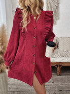 LUNE Women Front Button Long Sleeve Ruched Minimalist Casual Short Dress