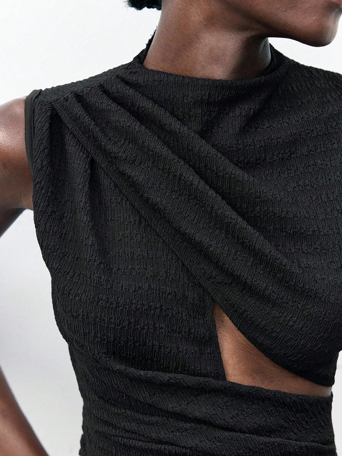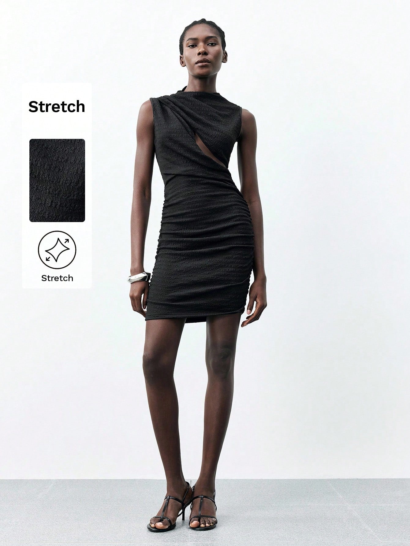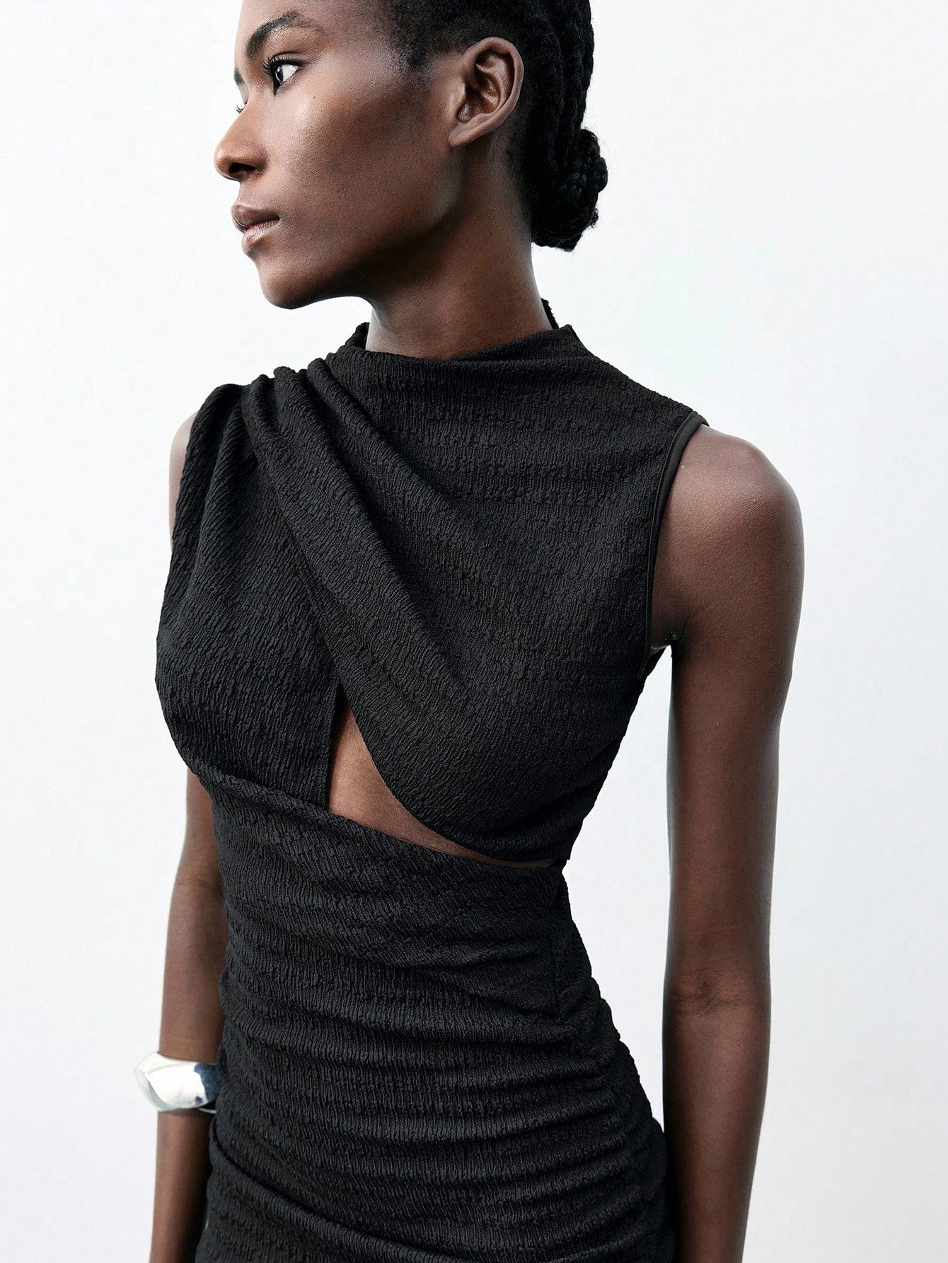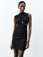 Maija Black Hollow-Out Sleeveless Mini Dress, Minimalist & Fashionable, Versatile For Summer Wear