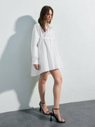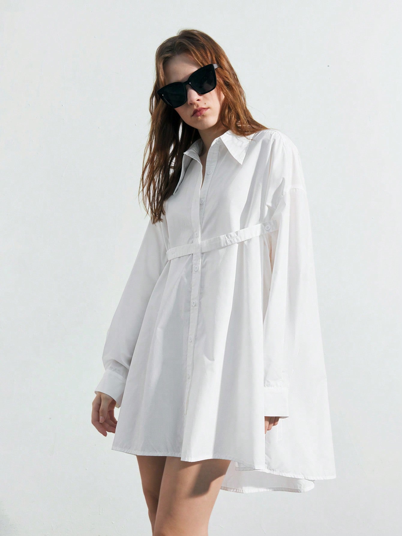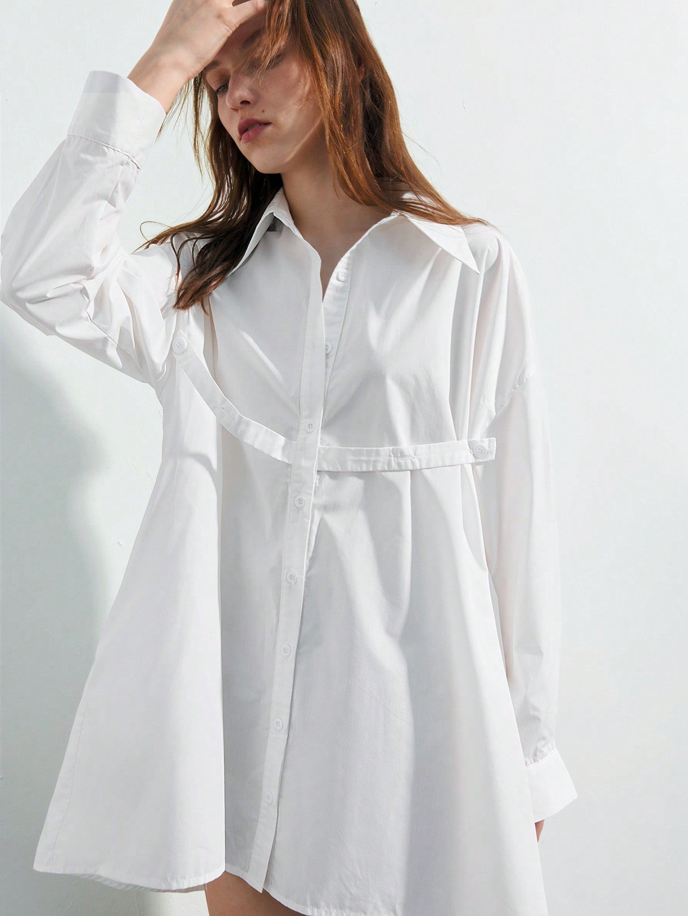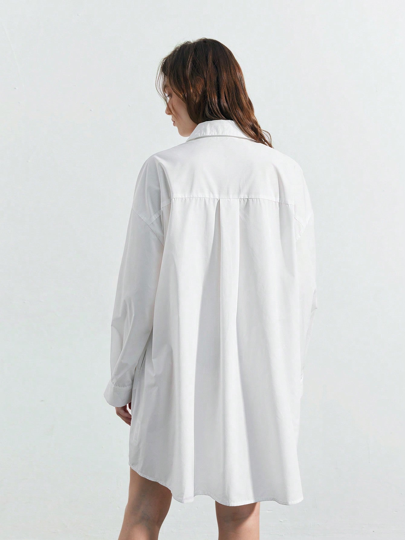 Maija Women Solid Color Drop Shoulder Long Sleeve High-Low Hem Blouse
