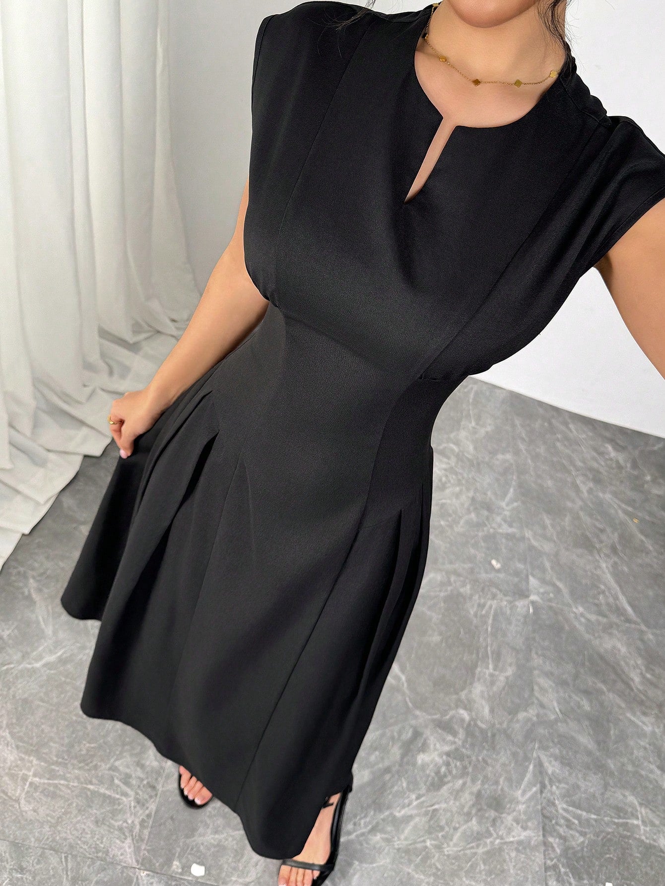 Modelyn Women Elegant Slim Fit V-Neck Long Solid Color Casual Work Dress