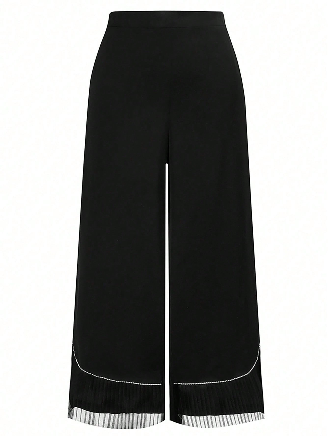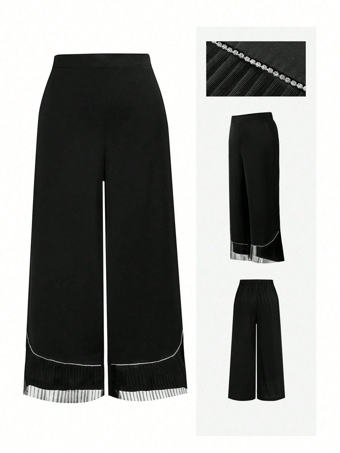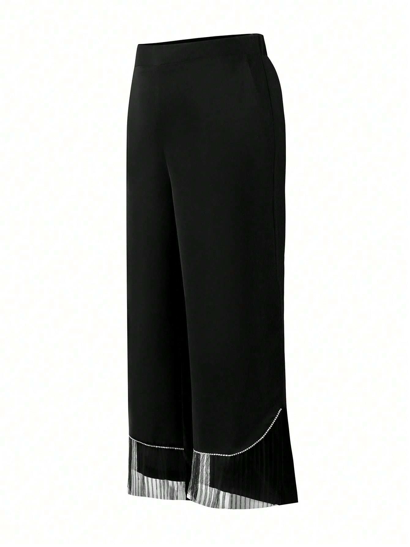 Mulvari Plus Size Striped Stitching Rhinestone Decorated High-Fashion Long Pants Fall Cloth For Women
