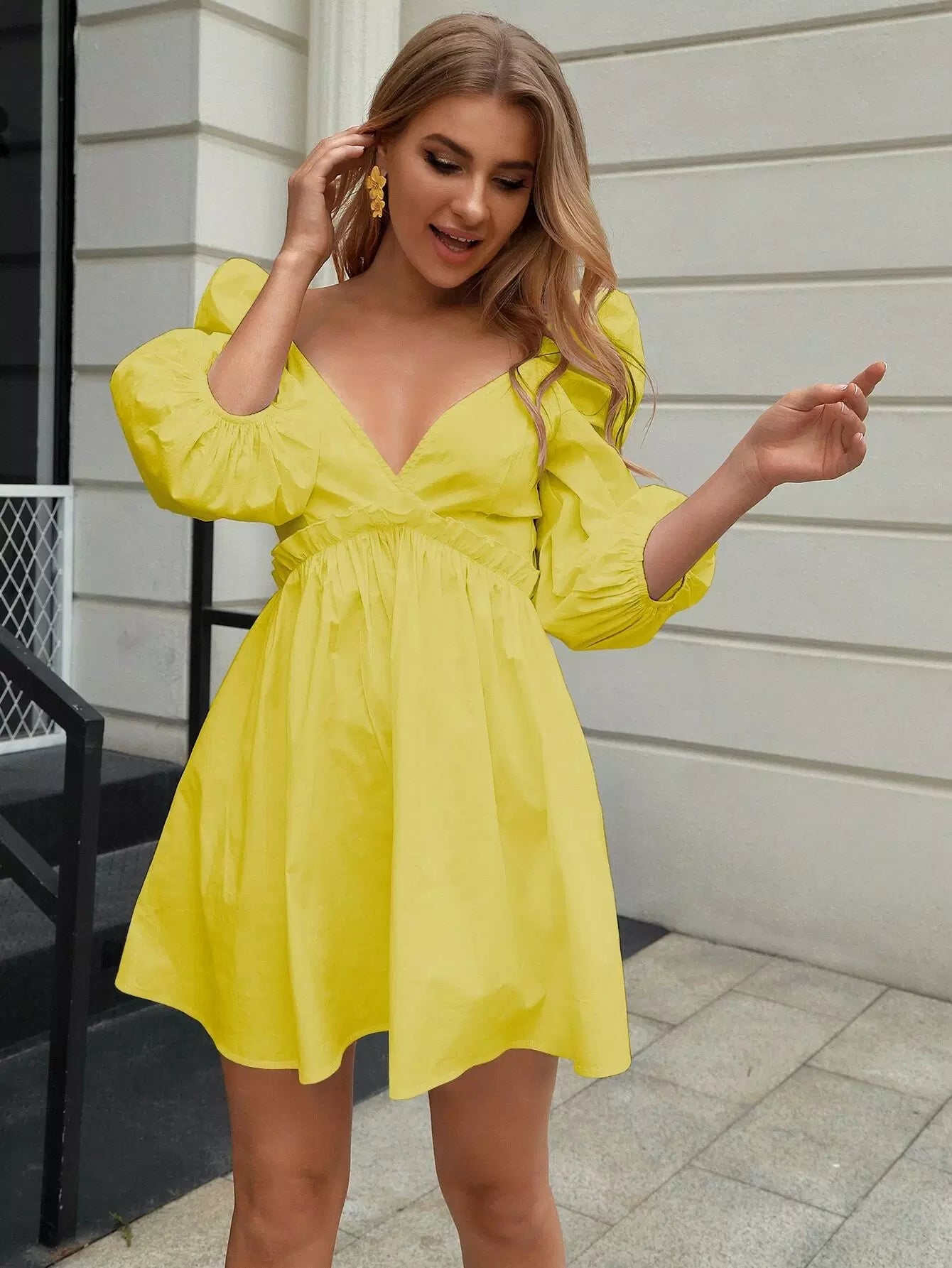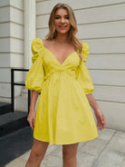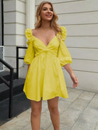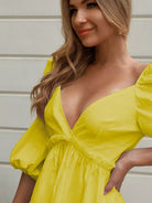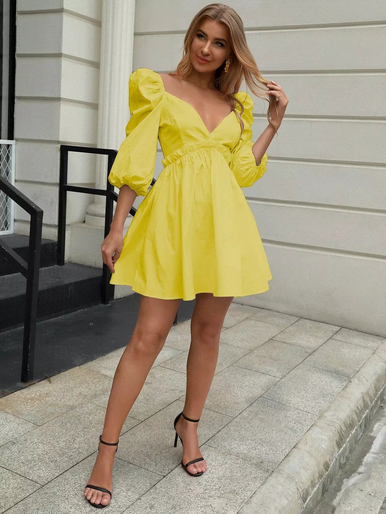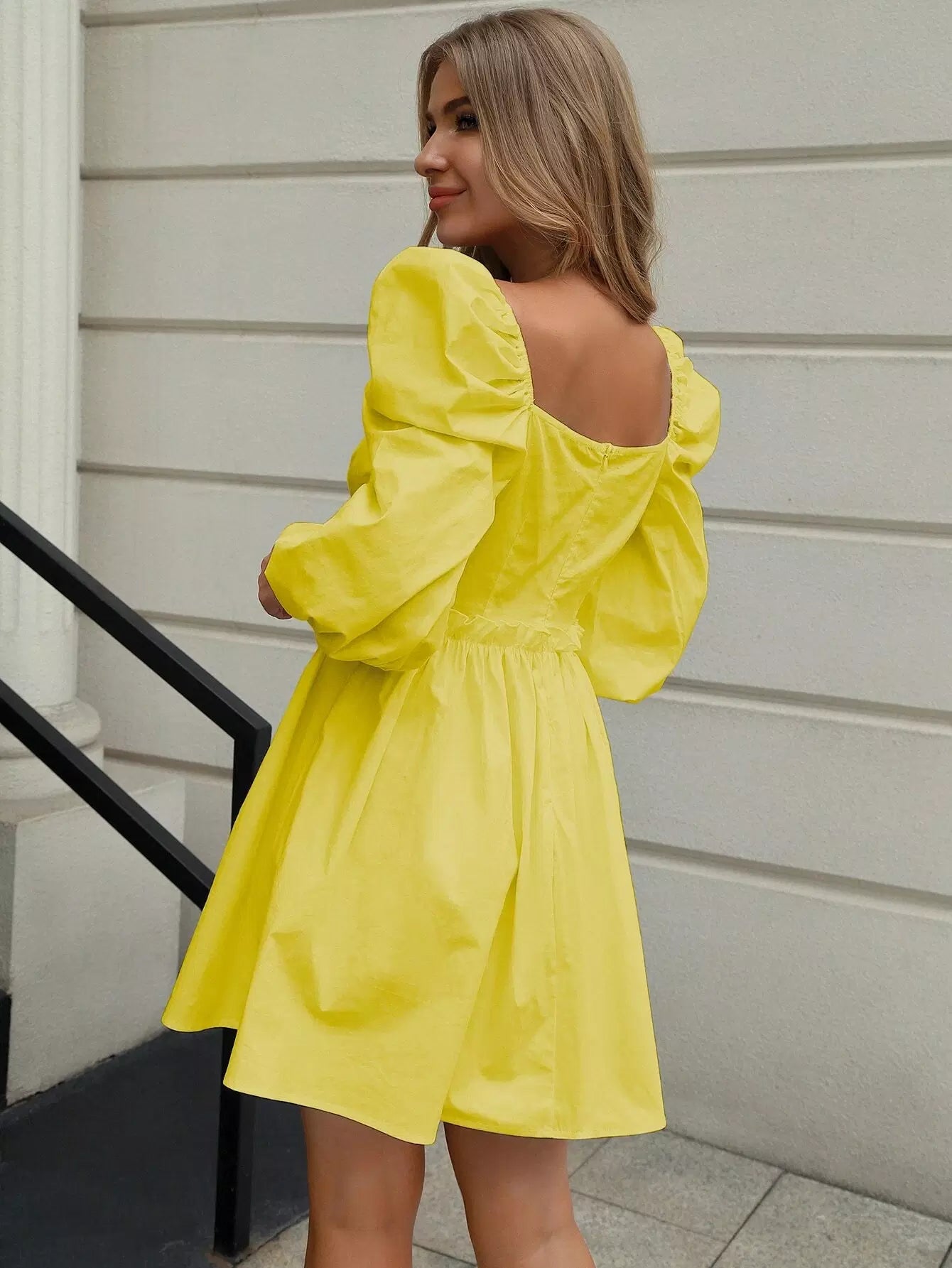 Neon Yellow Lantern Sleeve Frill Trim Skater Dress