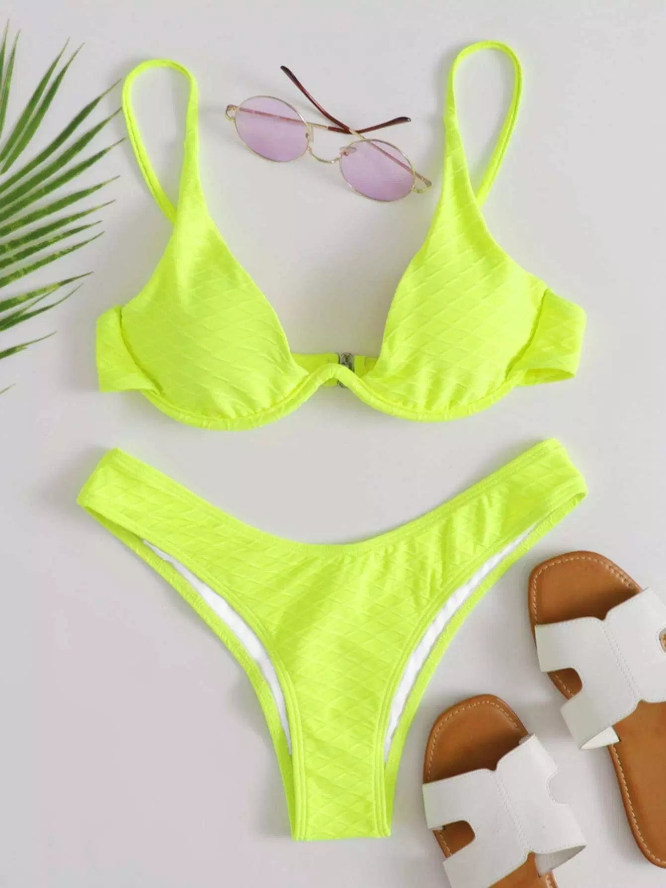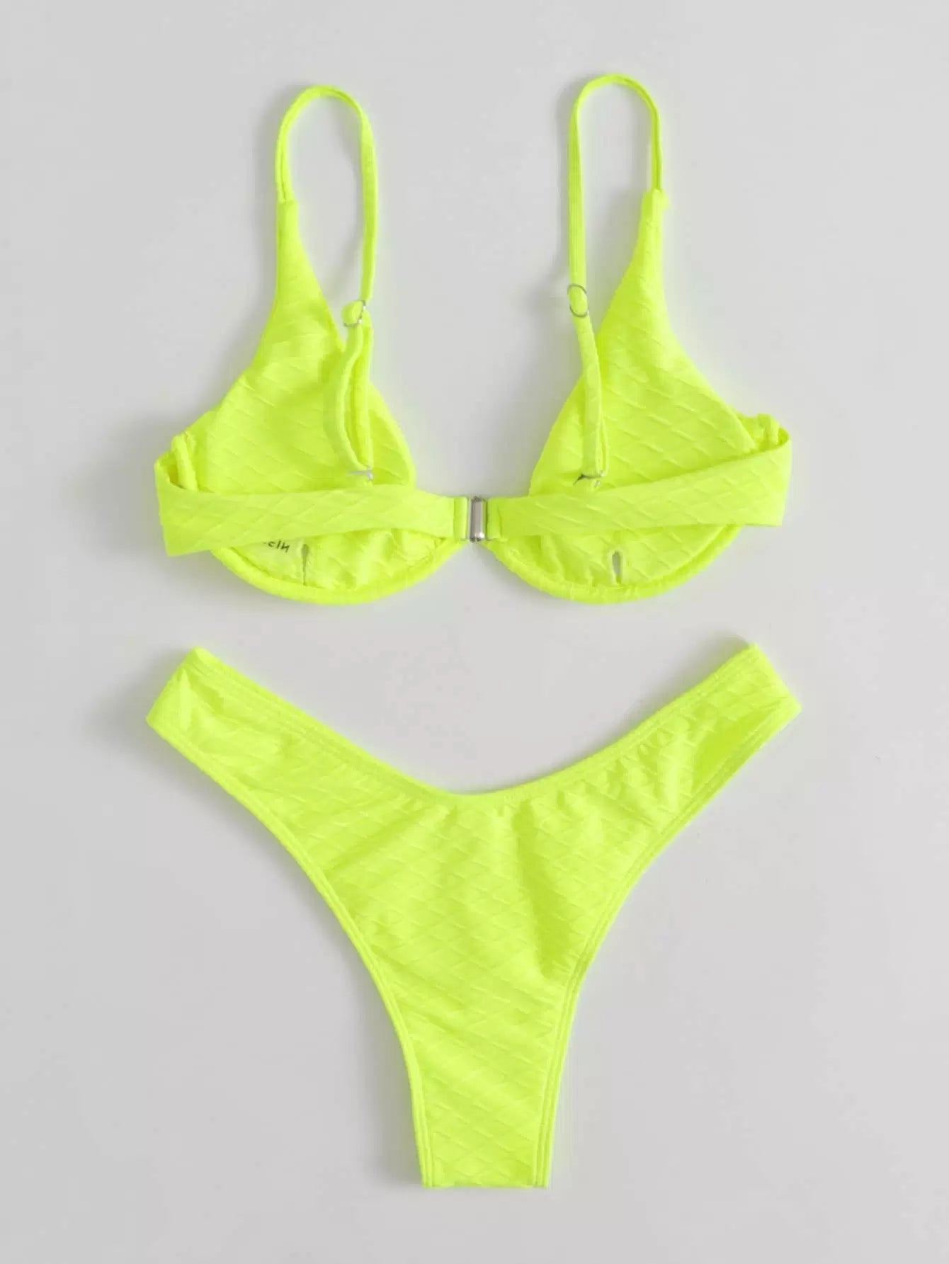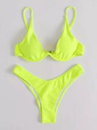Neon Yellow Textured Underwire Bikini Swimsuit